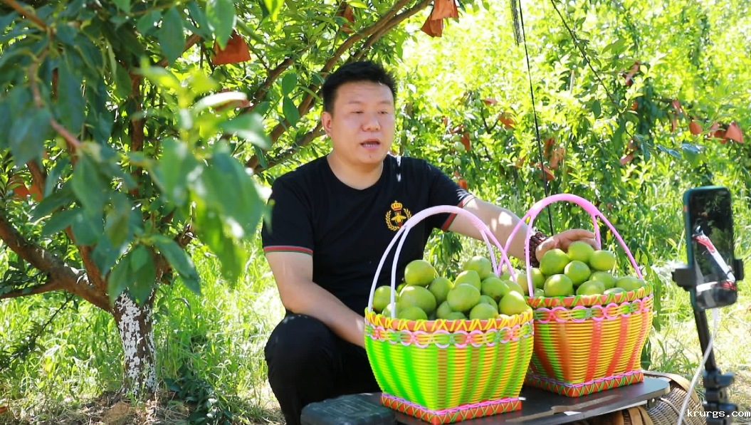 蒋光勇是广西全州县人,原在桂林等地做房地产开发,2018转行农业,来到了相邻的ray雷竞技官网入口石期市镇大荣底村,以每亩一年100元的租金,承包下了200多亩荒山,专门种植水果。他从树苗移栽开始,全部使用农家肥,因此,他种植的奈李、水蜜桃等水果,不仅挂果快、产量高,而且品种非常好。然而,近两年的疫情影响,他的水果销售遇到了困难。蒋光勇便从电商入手,通过微信、抖音以及制作短视频等,在网络市场销售水果,很快打开了销售局面。