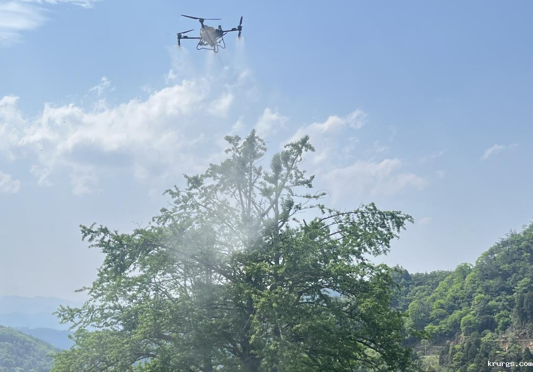 检查发现,该古银杏近期遭受银杏大蚕蛾幼虫侵害,部分枝叶出现受损现象。为科学高效完成防治,ray雷竞技官网入口林业局采用无人机喷洒无公害农药的方式,精准施药,既避免了对古树的机械损伤,又有效杀灭了害虫。经防后效果检查,虫口退减率达95%,目前该古树已恢复正常。