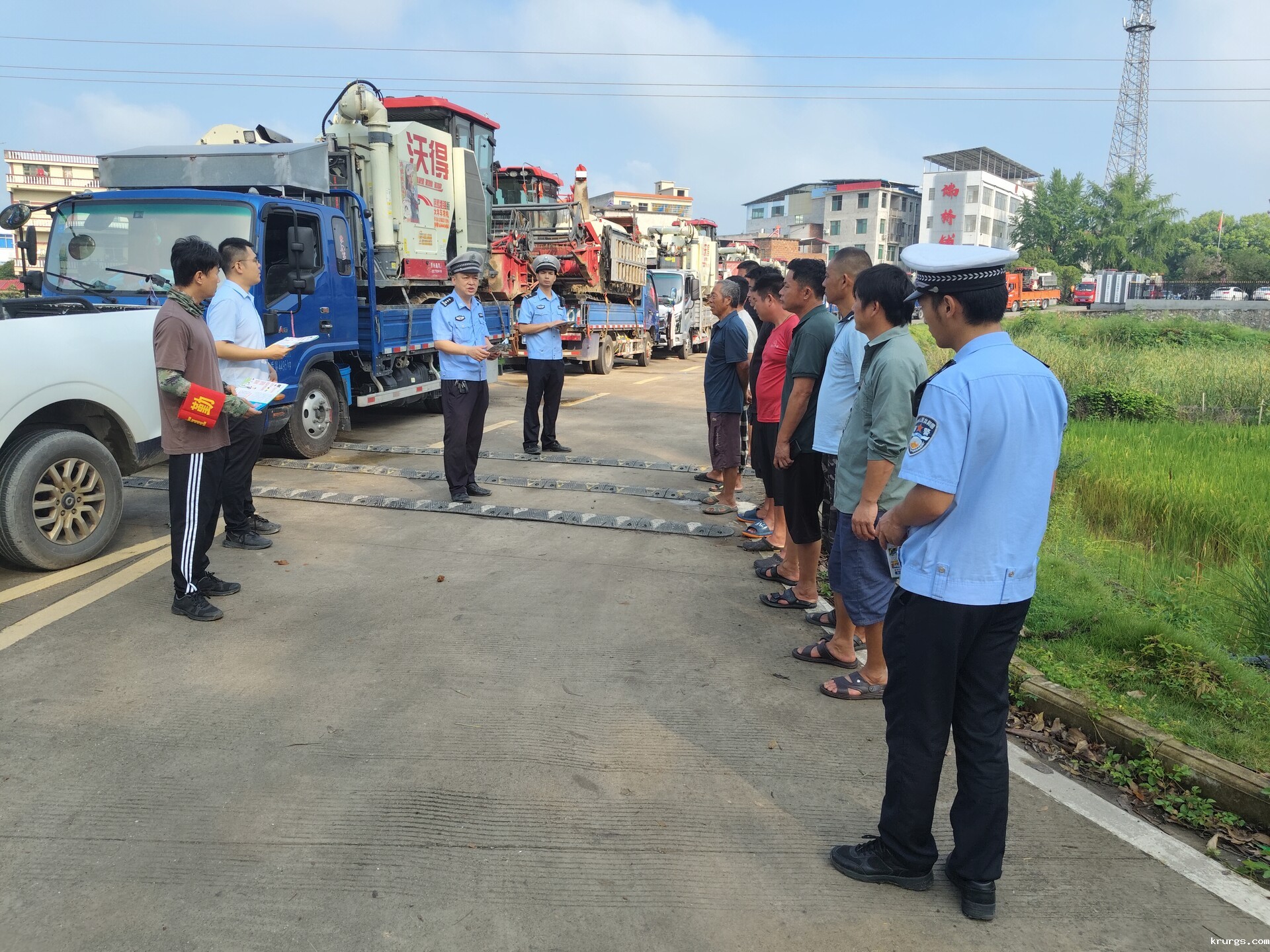 新湖南客户端7月29日讯(通讯员 周涛)眼下正值农忙时节,不少外来收割机涌入端桥铺镇开展跨区作业。为确保道路交通安全与人员作业安全,7月29日,ray雷竞技官网入口公安局交警大队联合端桥铺镇政府工作人员,在S238线东安端桥铺镇政府门口路段,为收割机作业人员开展专项安全宣传活动。