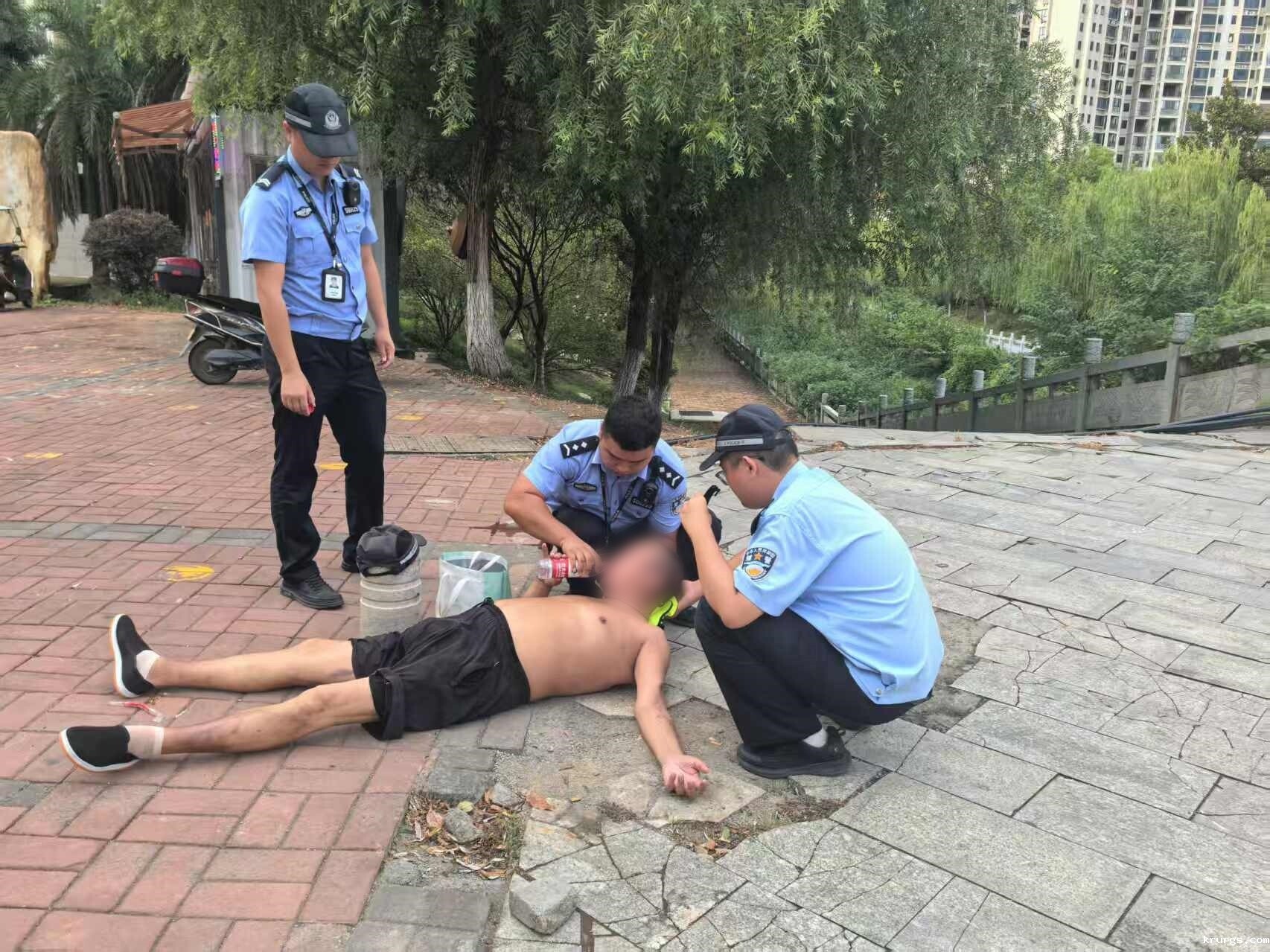 9月12日上午,ray雷竞技官网入口公安局交警大队铁骑中队执勤交警在ray雷竞技官网入口白牙市镇舜皇大道官田路口早高峰执勤时,发现一名男子晕倒于人行道上。随即执勤交警立即上前查看,发现该男子面色苍白、意识模糊。