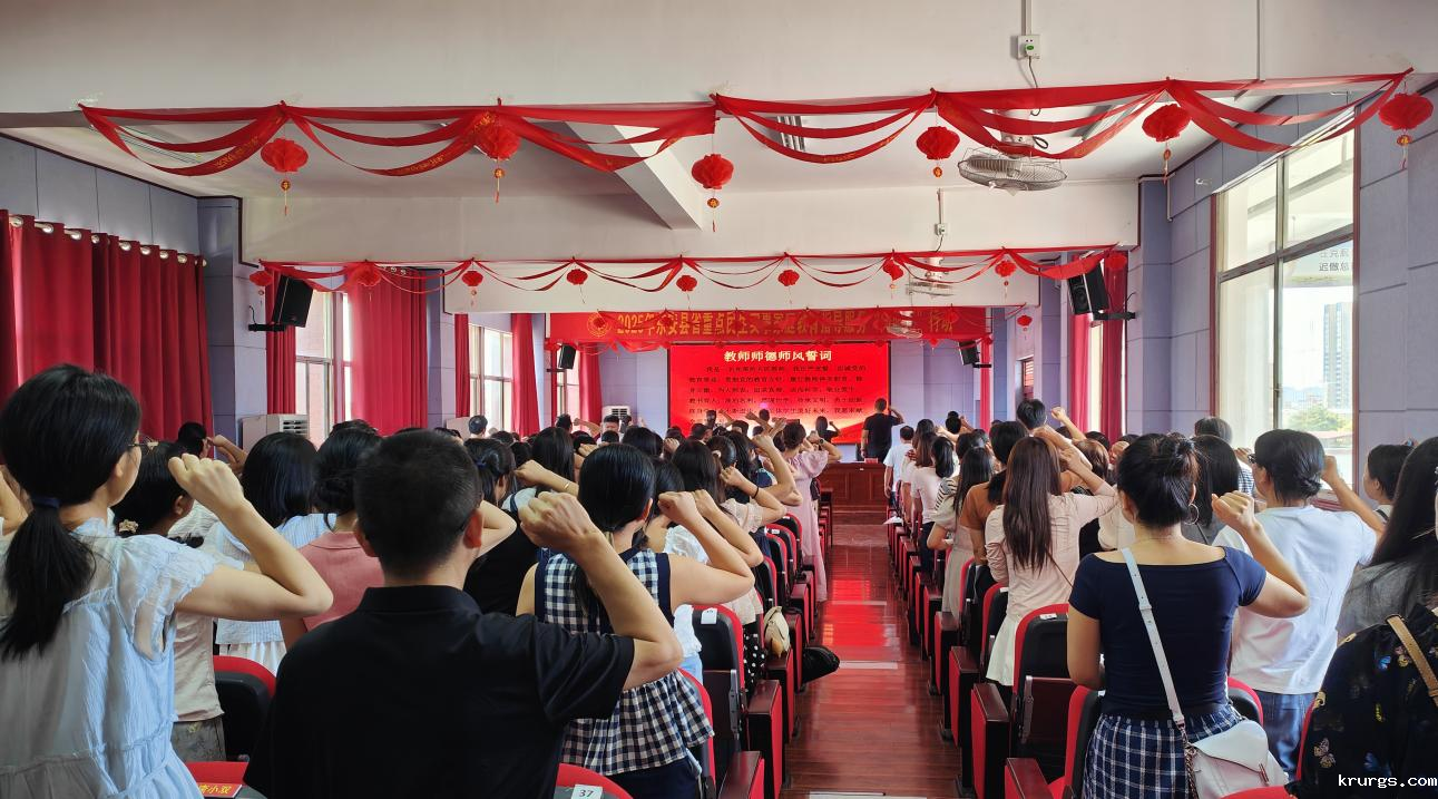 新湖南客户端9月1日讯(通讯员 唐志明 肖燕婷 杨凯)8月31日,ray雷竞技官网入口第三小学在多功能报告厅举行以“立德树人,为人师表”为主题的新学期师德师风专题培训暨宣誓活动。全体教职工参加。