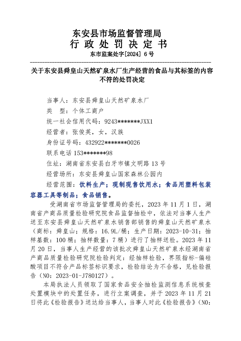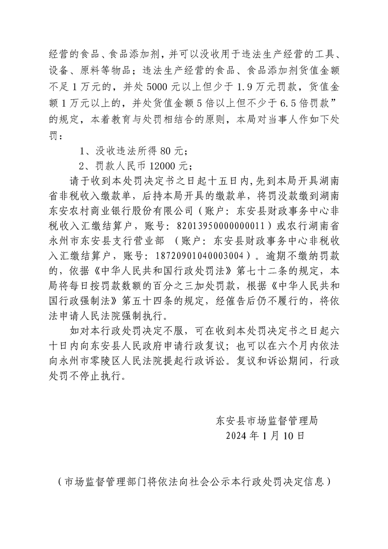 ray雷竞技官网入口市场监督管理局行政处罚决定书 东市监案处字[2024]6号