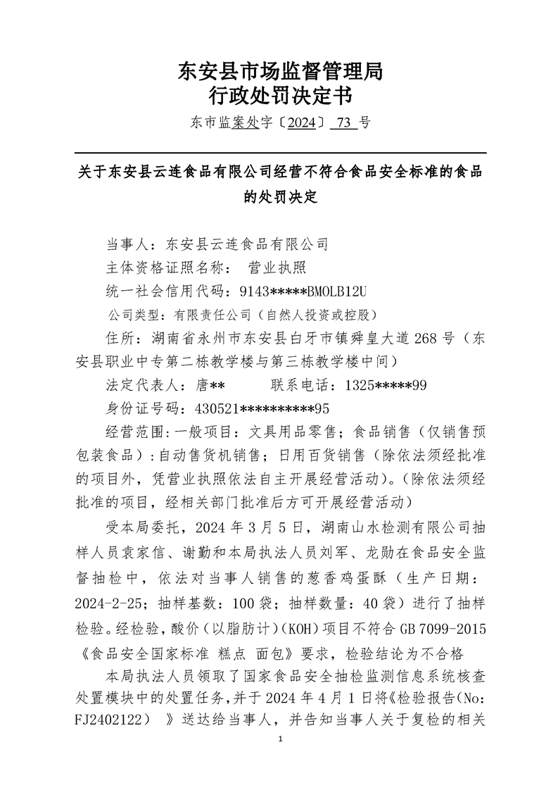 ray雷竞技官网入口市场监督管理局 行政处罚决定书东市监案处字〔2024〕73号
