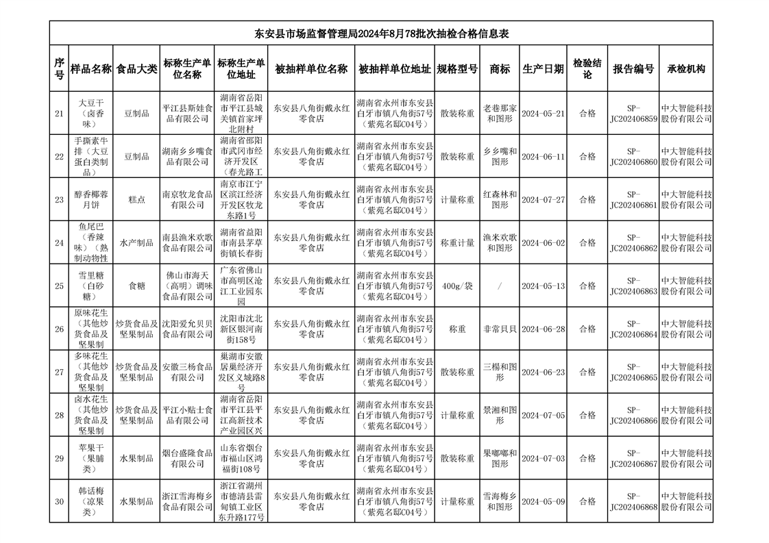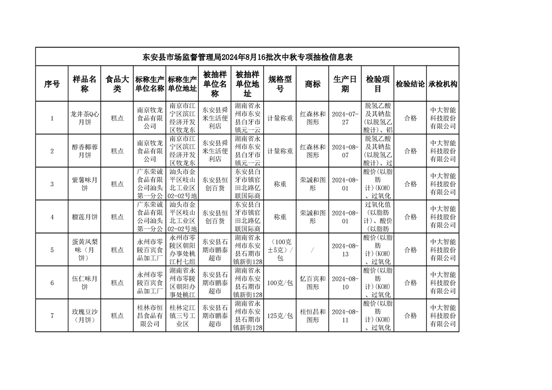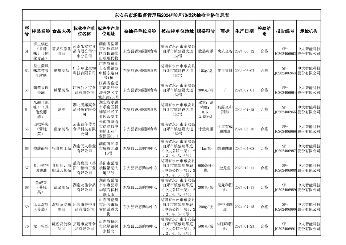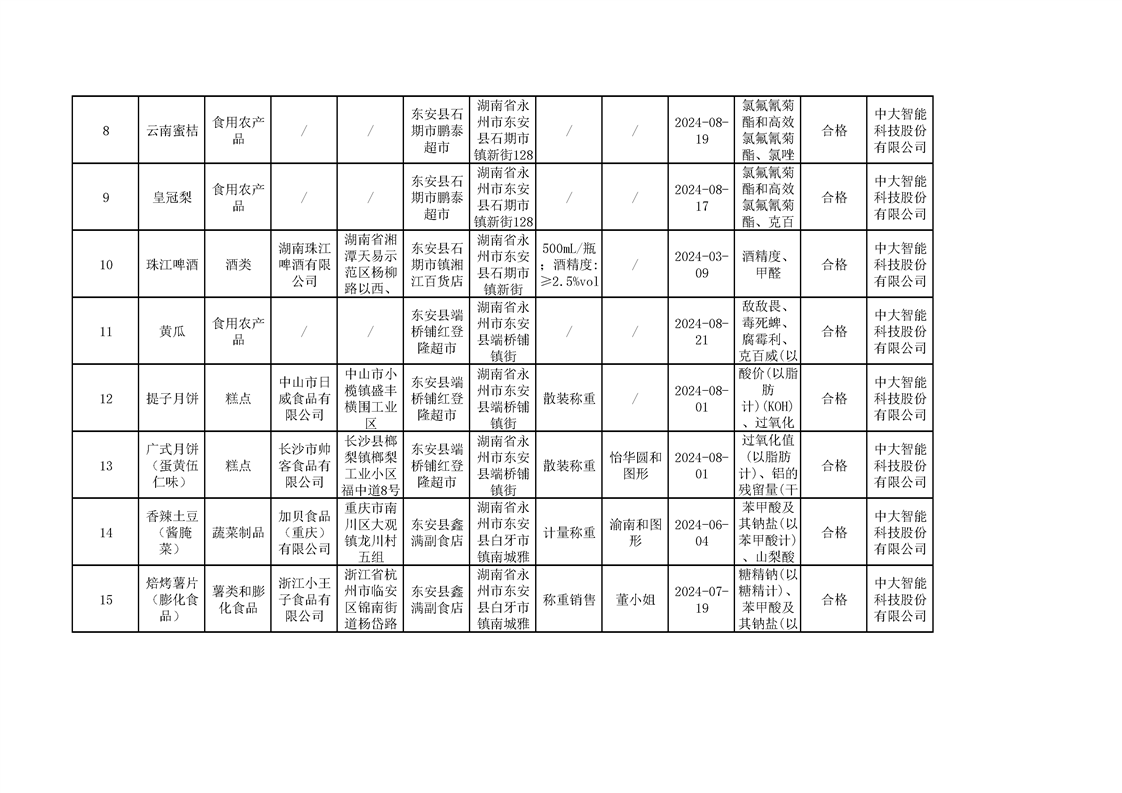 2024年8月ray雷竞技官网入口食品安全监督抽检情况公示(第六期)
