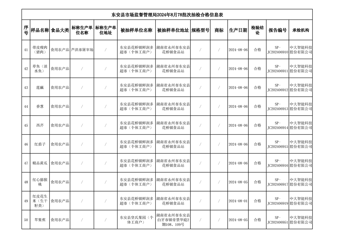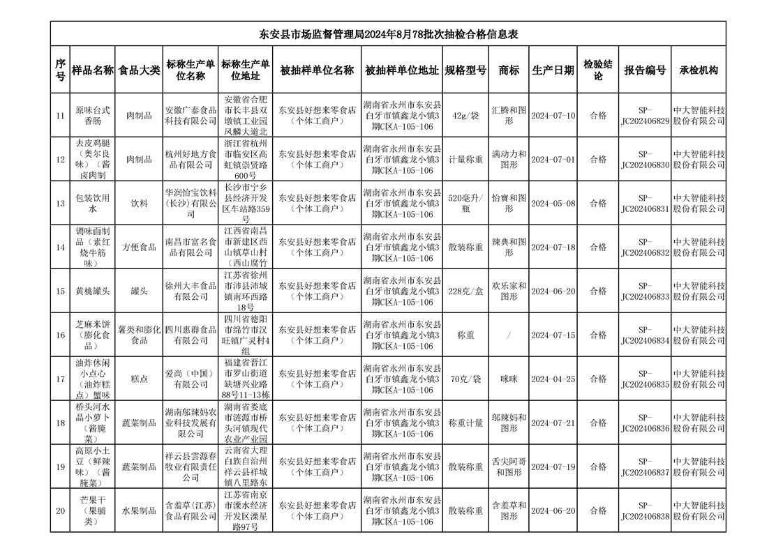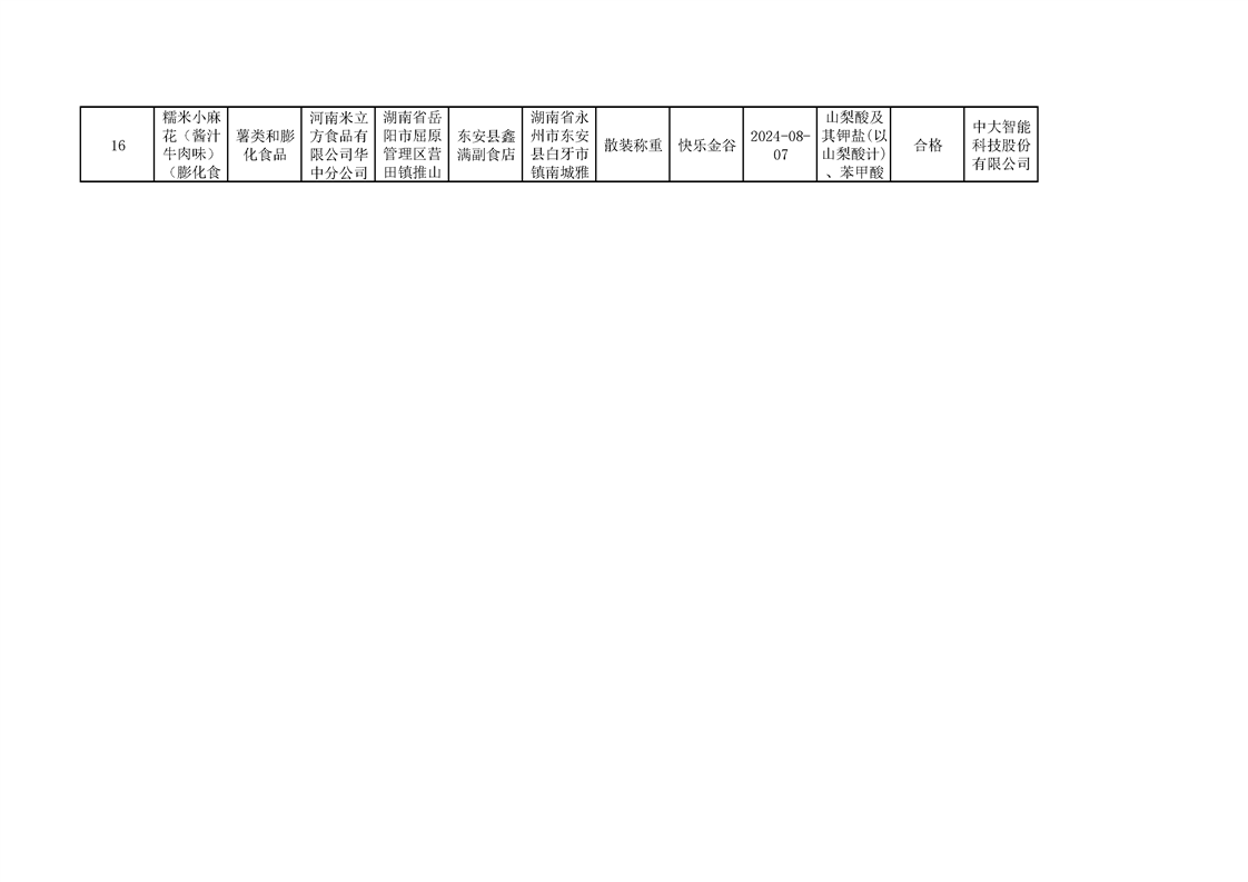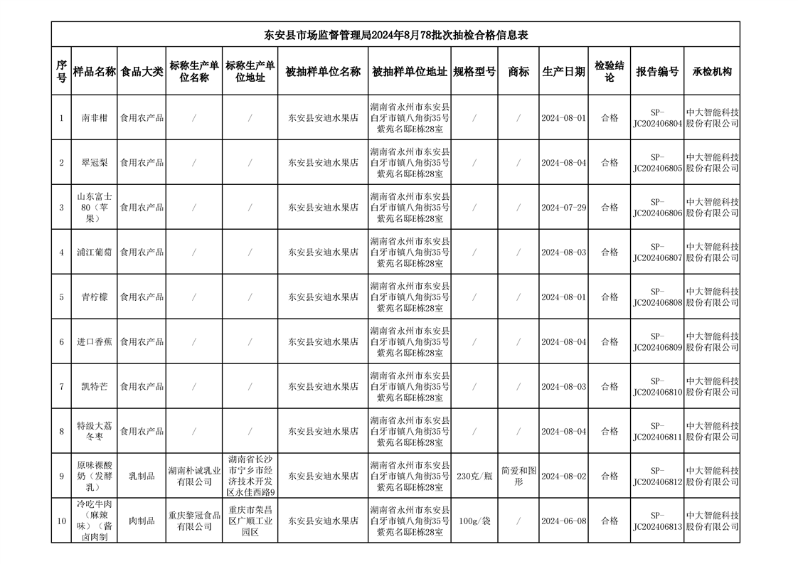 2024年8月ray雷竞技官网入口食品安全监督抽检情况公示(第六期)