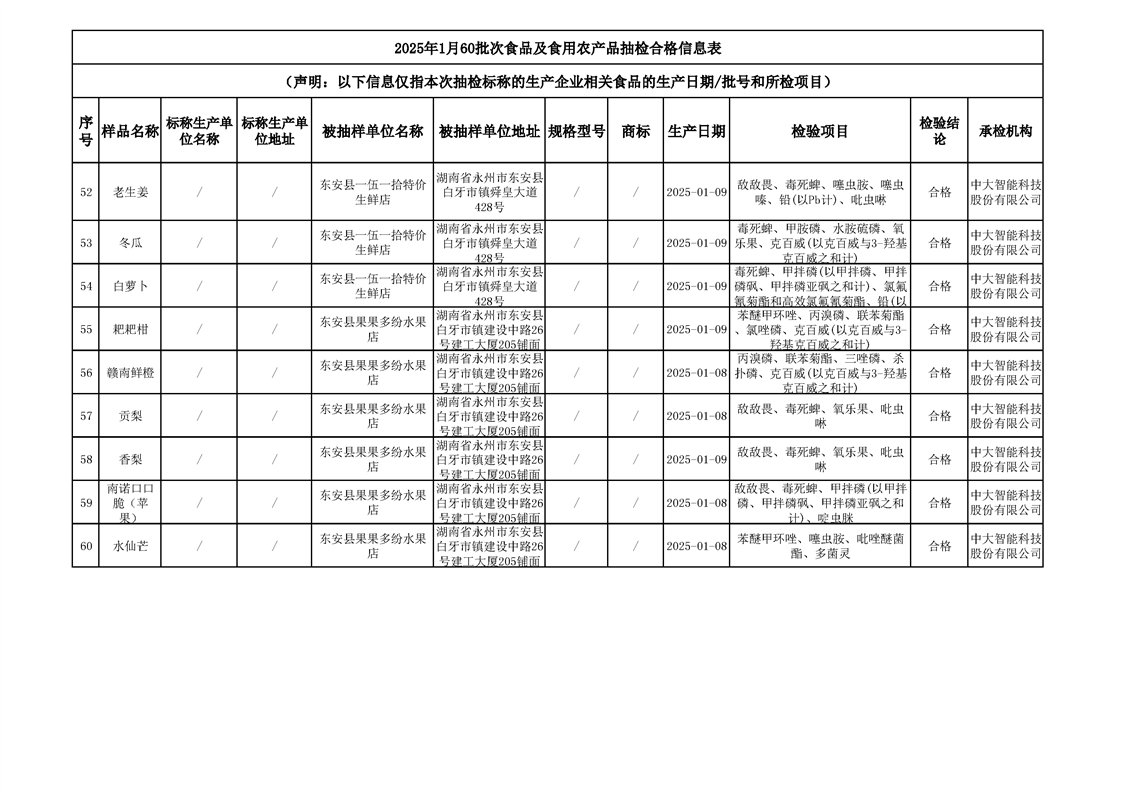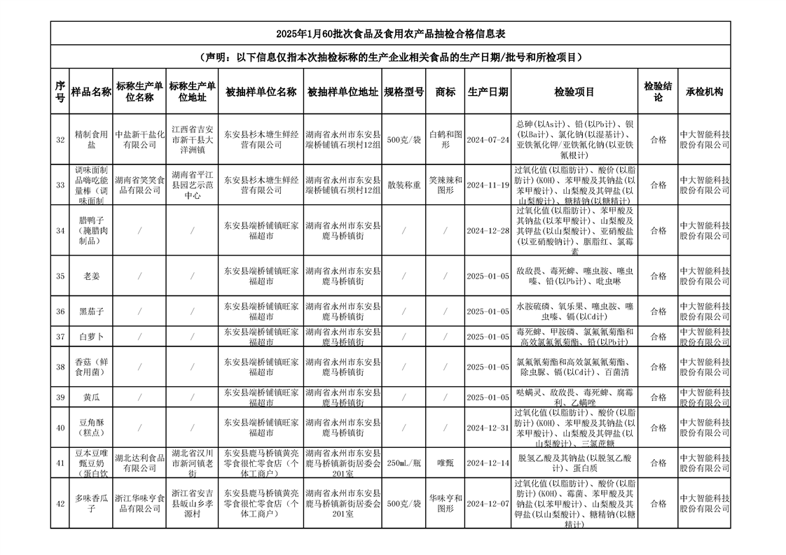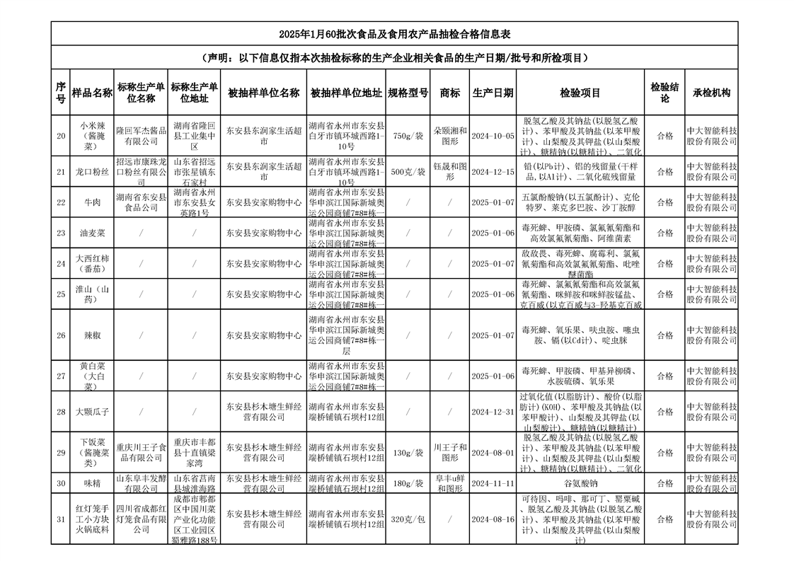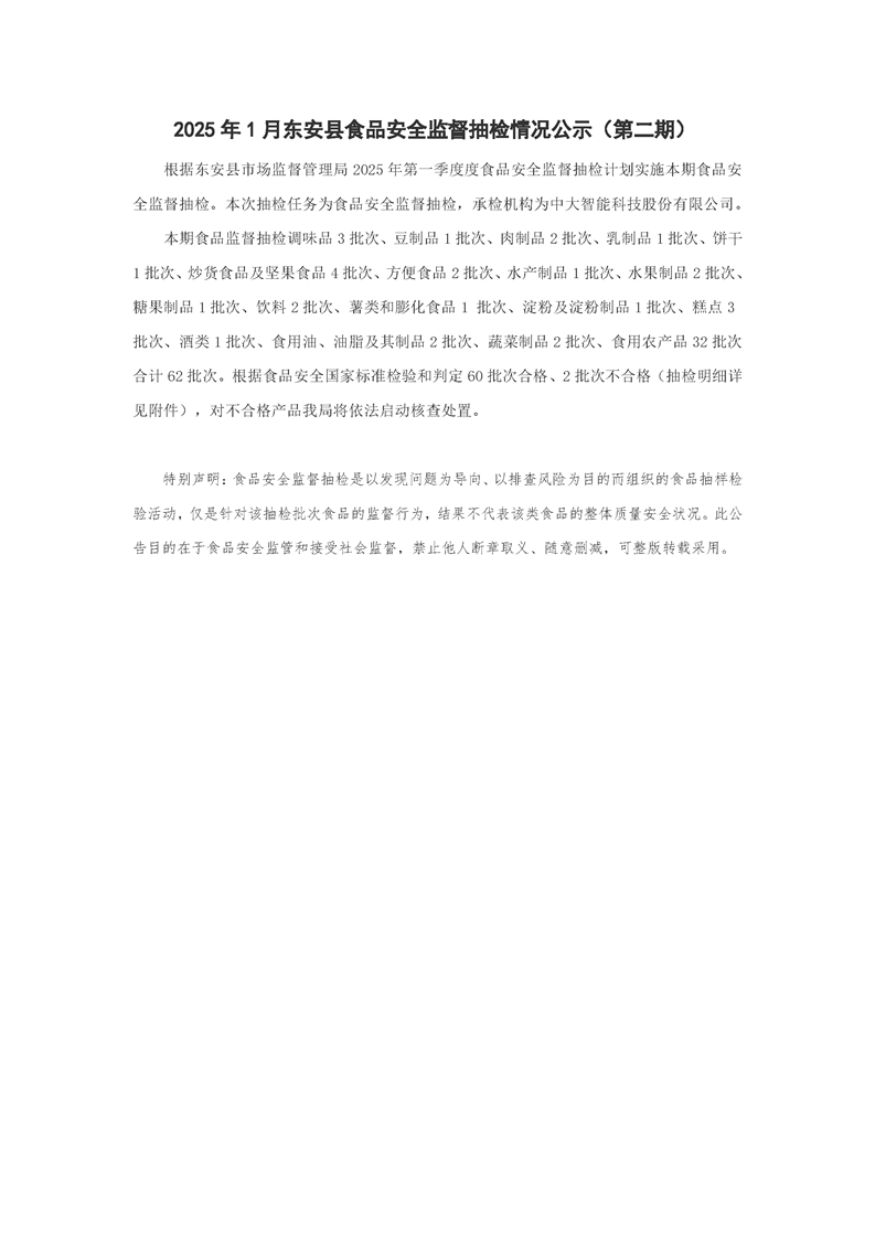 2025年1月ray雷竞技官网入口食品安全监督抽检情况公示(第二期)
