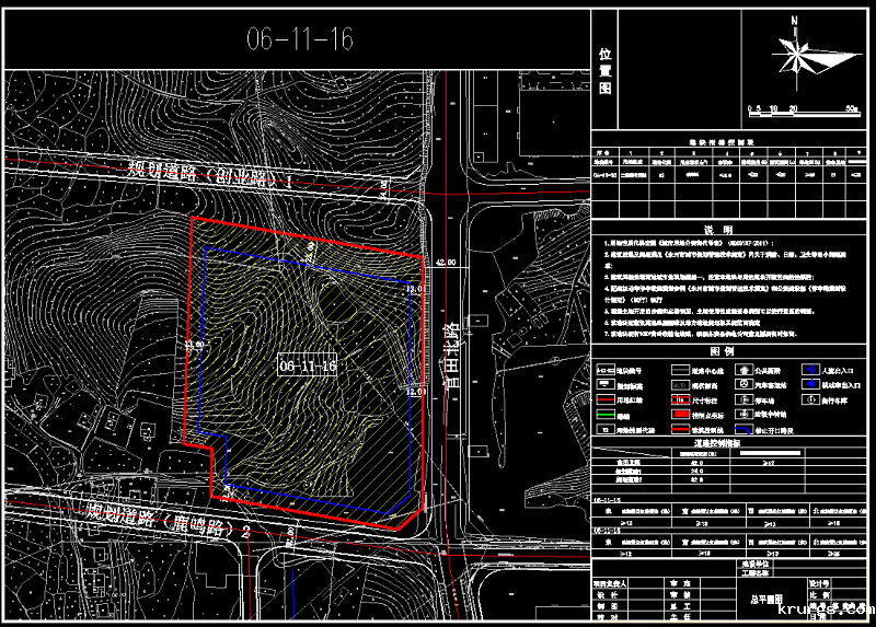 规划情况:06-11-16地块位于白牙市镇工业园内,鹿鸣路与官田路交汇处,官田路西侧,鹿鸣路北侧;规划主要经济技术指标:用地性质为二类居住用地(兼容商业30%),用地面积53334㎡(合约80.0亩),容积率≤3.0,建筑密度≤22%,绿地率≥35%,建筑限高≤80m,南退用地红线≥13m,东退官田北路道路红线≥12m,西退用地红线≥13m,北退用地红线≥25m。