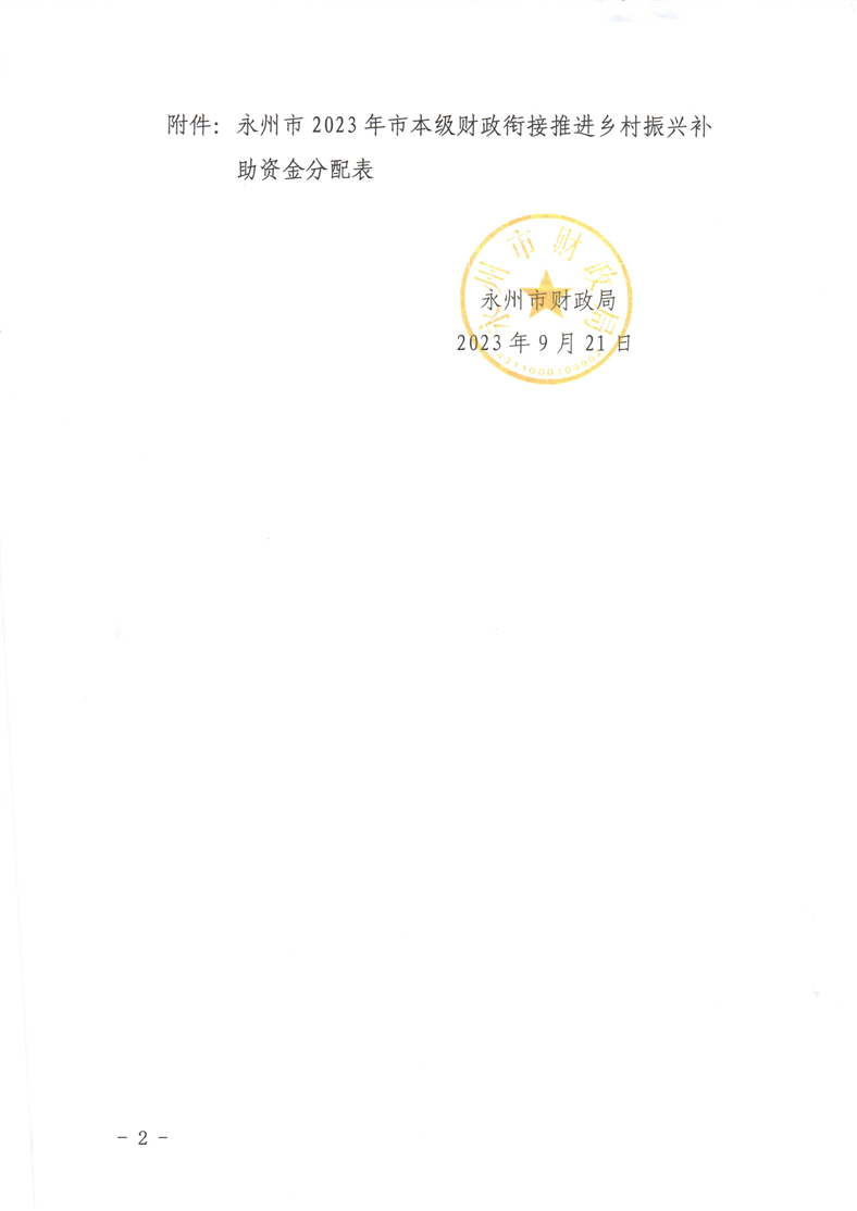 永财农函【2023】002号2023年市本级财政衔接推进乡村振兴衔接资金