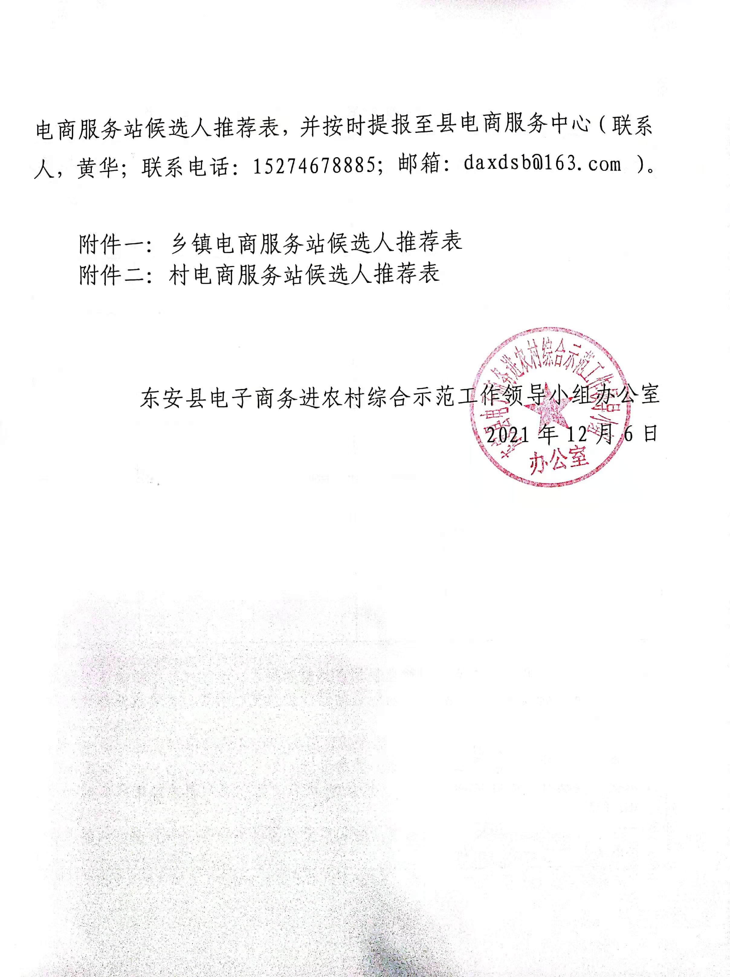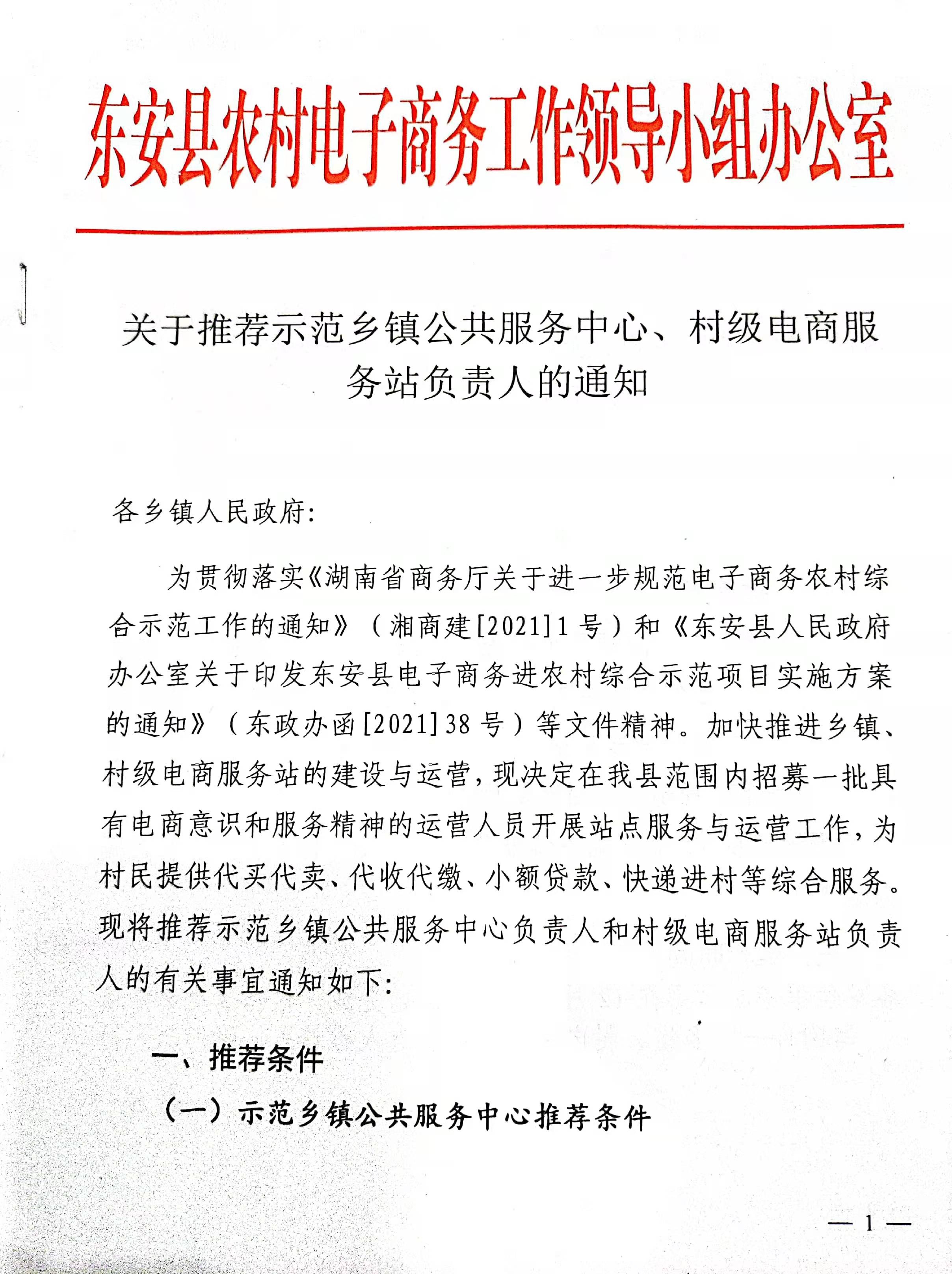 关于推荐示范乡镇公共服务中心、村级电商服务站负责人的通知