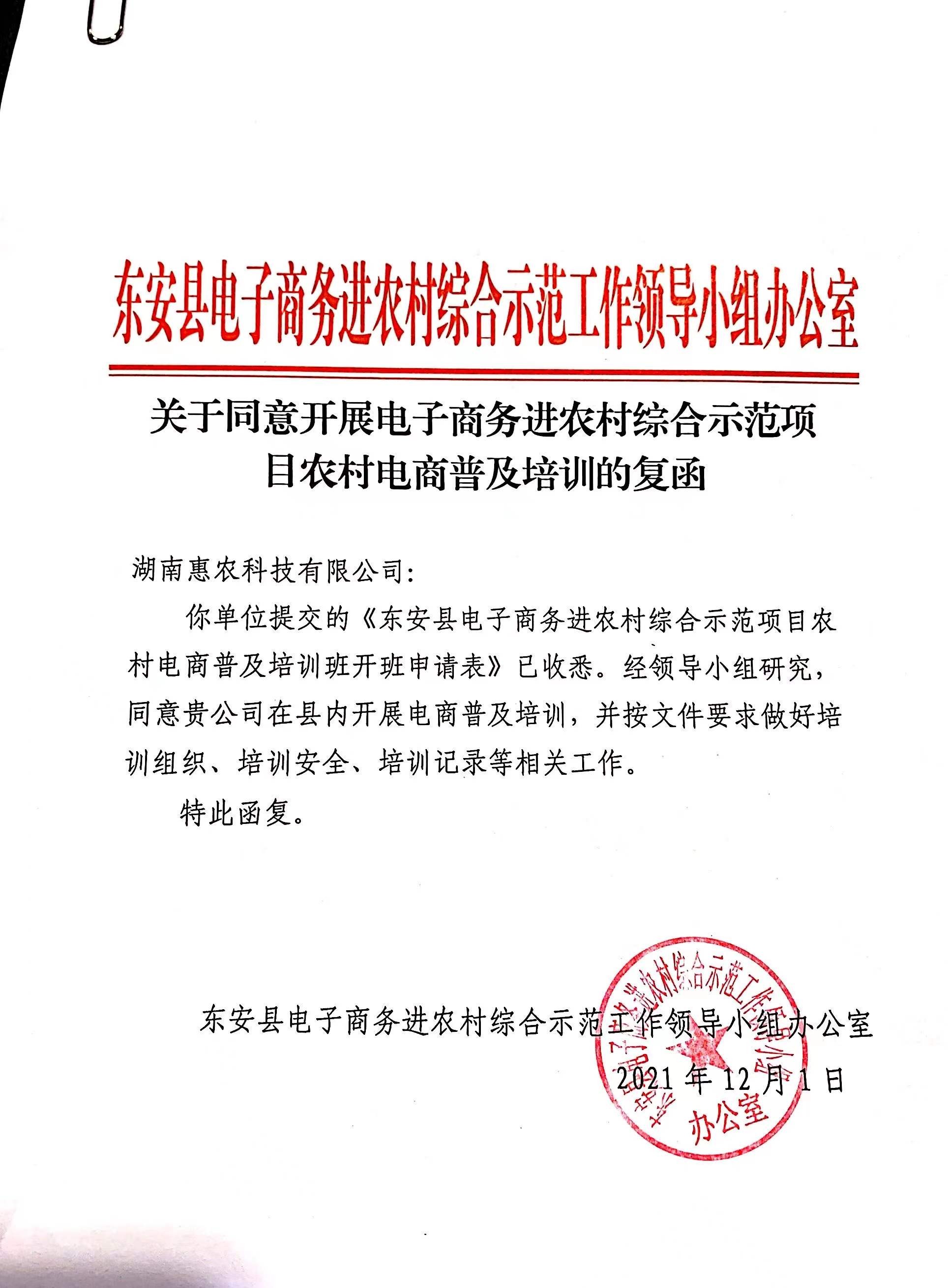 关于同意开展电子商务进农村综合示范项目农村电商普及培训的复函