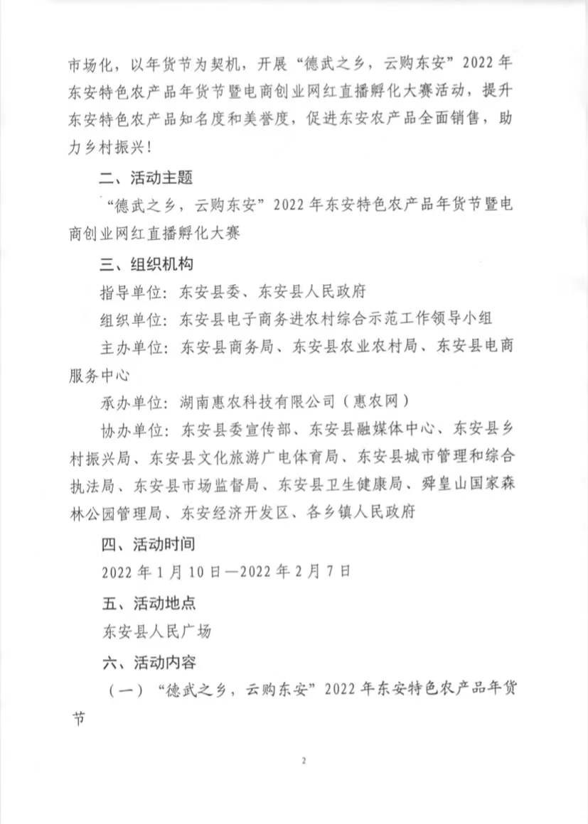 关于举办“德武之乡,云购东安”2022年东安特色农产品年货节暨电商创业网红直播孵化大赛活动的通知