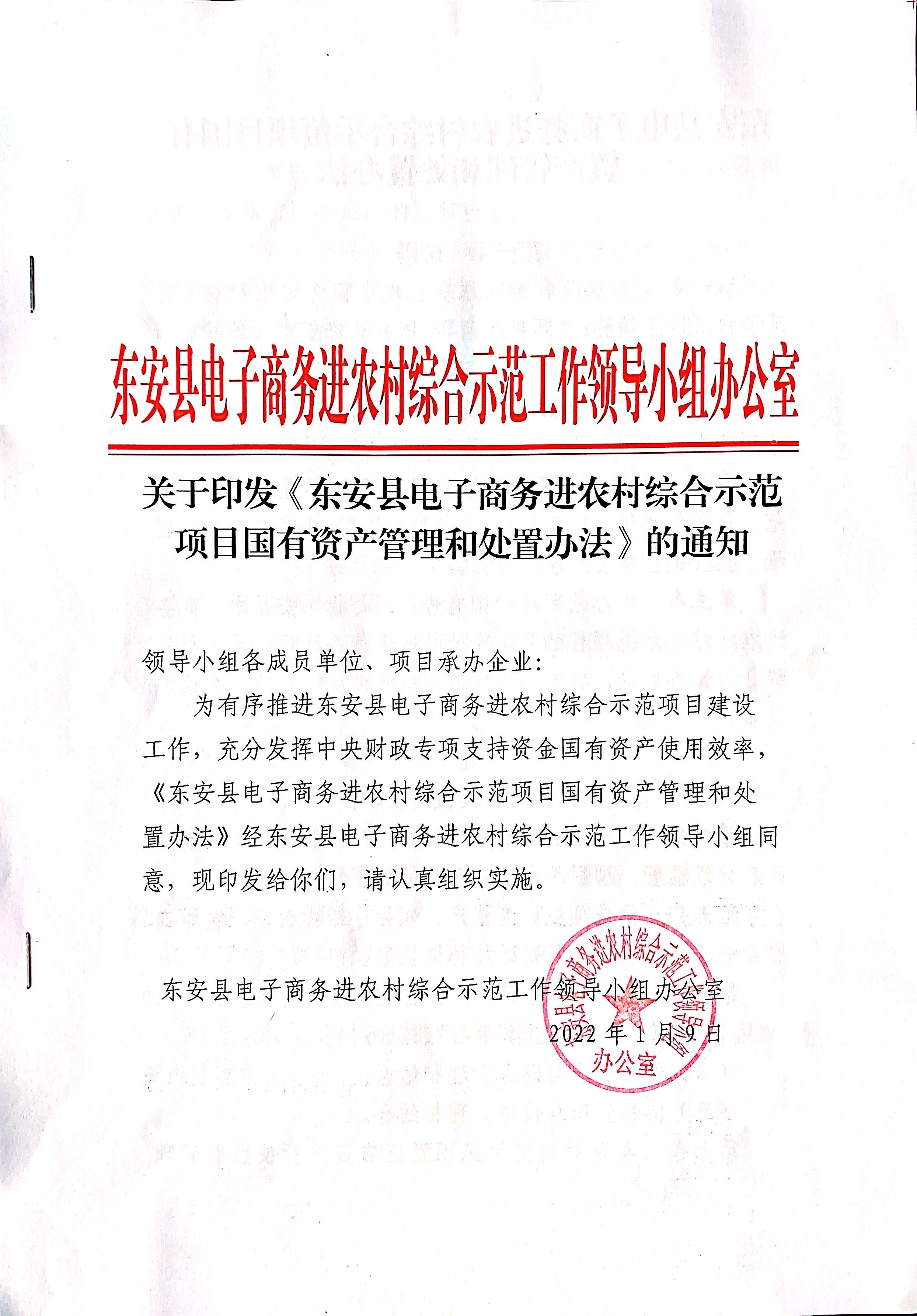 关于印发《ray雷竞技官网入口电子商务进农村综合示范项目国有资产管理和处置办法》的通知