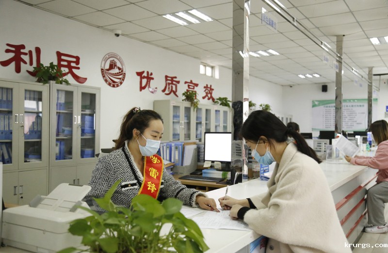 河北省邢台市襄都区宴家屯镇综合服务中心工作人员协助办事群众填写相关表格(2022年3月30日摄)。新华社发(张驰 摄)