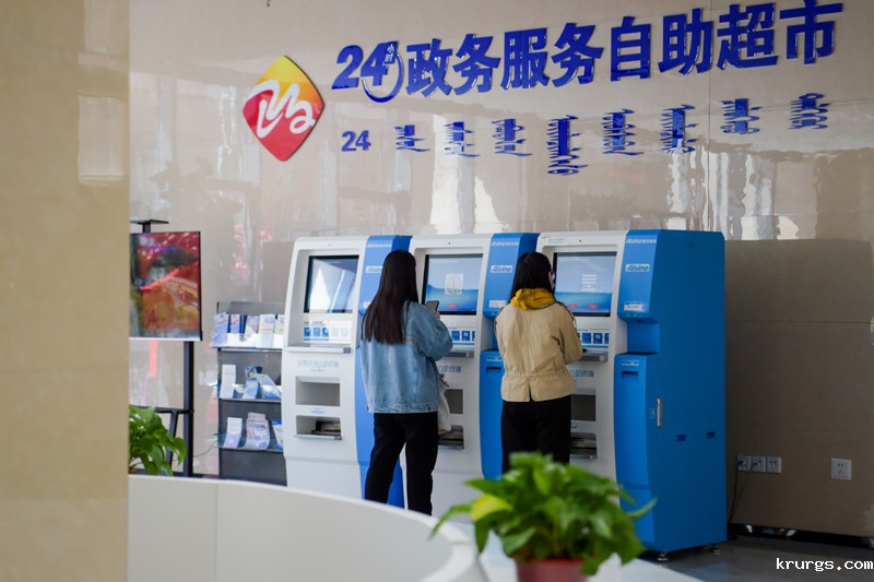 在内蒙古自治区呼和浩特市玉泉区政务服务中心的“24小时政务服务自助超市”,市民在自助办理发票业务(2022年4月2日摄)。新华社记者 李志鹏 摄