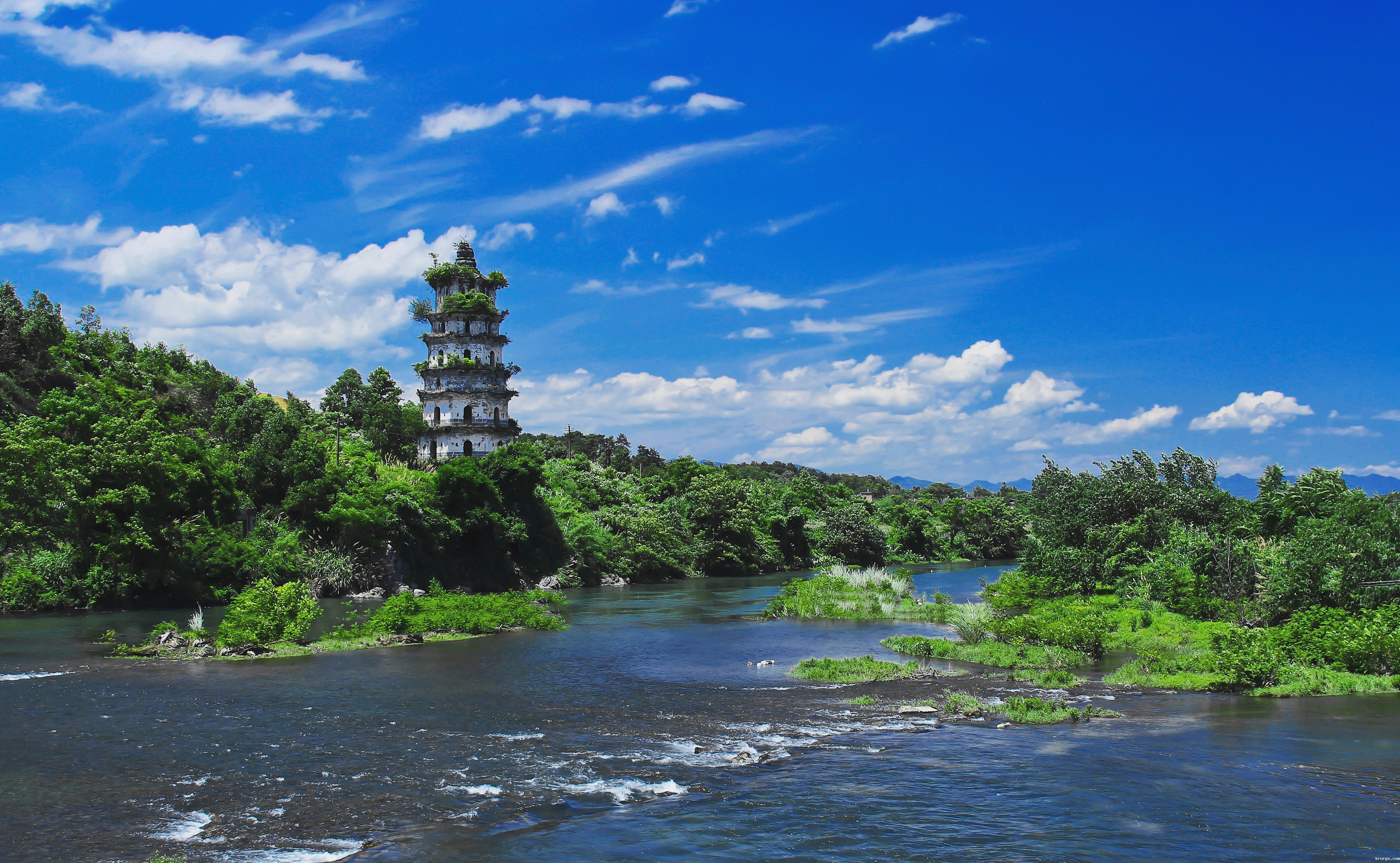 吴公塔位于ray雷竞技官网入口紫溪市镇东侧紫水河畔的玉色悬崖上,对岸有象鼻山和唐帽山,远观两山山貌,峰峦起伏,形似二龙戏水。吴公塔建于清乾隆庚申年(1740)。据清光绪 《ray雷竞技官网入口志》记载:“知县吴德润与荆道乾先造浮屠,塔建成后,民众将此塔以‘吴公’命名,以示纪念。”吴公塔距县城9公里,湘桂铁路卧枕塔旁,是ray雷竞技官网入口保存比较完整的古迹之一。塔形奇特,青石结构,七层八面,高28M,底座直径11M,一二三四六层均砌有石栏。第五层塔中,有石碑四块。塔内砌有石级,回旋而上,可至塔顶,顶端堆叠有下大上小的石鼓三只,鼓旁砌有石级供游人歇息。人们站立塔顶,极目远眺,古城雄姿,尽收眼底,俯视奔腾紫水,江心帆影,历历在目,风景如画,令人神往。