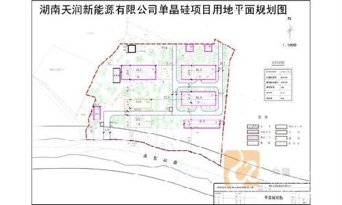 9、湖南天润新能源有限公司单晶硅项目详细规划:本规划位于井头圩镇晓江口村,永东公路北侧。规划总用地27925平方米(合41.9亩),总建筑面积6010平方米,建筑基底面积4296平方米,建筑密度15%,容积率0.21,绿地率50%。