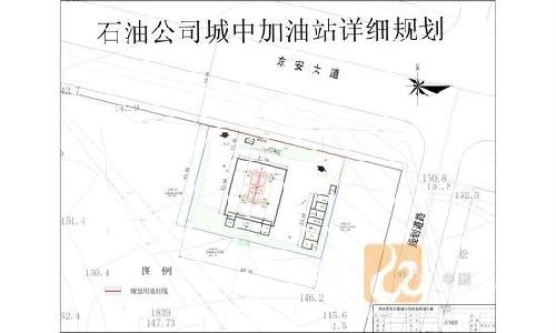 2、东安大道石油公司加油站详细规划:该规划位于东安大道以南,规划总用地面积为2700平方米,总建筑面积为255平方米。