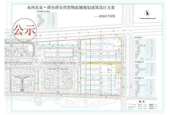 5、舜皇商业广场修建性详细规划局部调整。该规划调整区域为原B区沿东安大道铺面、C区、F区。主要规划经济技术指标:规划总用地面积为9.56万平方米(合约143.28亩),总建筑面积约21.40万平方米,其中地上建筑面积为19.24万平方米,地下建筑面积为2.2万平方米,容积率为2.01,建筑密度为54.26%,停车位623个(地上48个,地下575个)。各功能用房建筑面积分别为:住宅建筑面积1.1万平方米,公寓面积2.2万平方米,建材家居市场14.5万平方米,酒店1.55万平方米。