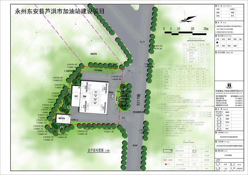 规划情况:该规划位于芦洪市镇应阳大道与省道S217线交叉口,规划总平图中间布置4个埋地油罐和一栋2F辅助用房,主要规划经济技术指标:规划总占地面1702.33㎡(合约2.55亩),建筑基地面积620.89㎡,建筑面积539.78㎡,建筑系数36.47%,容积率0.32,绿地率30.05%。