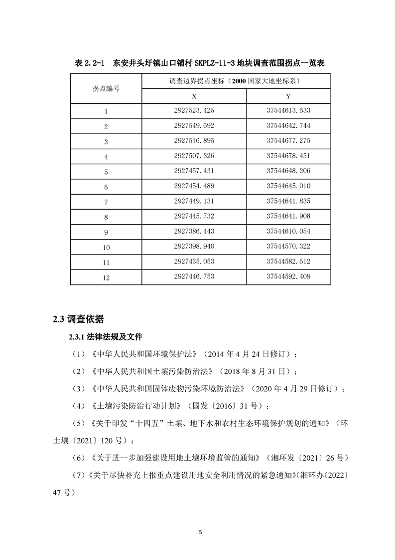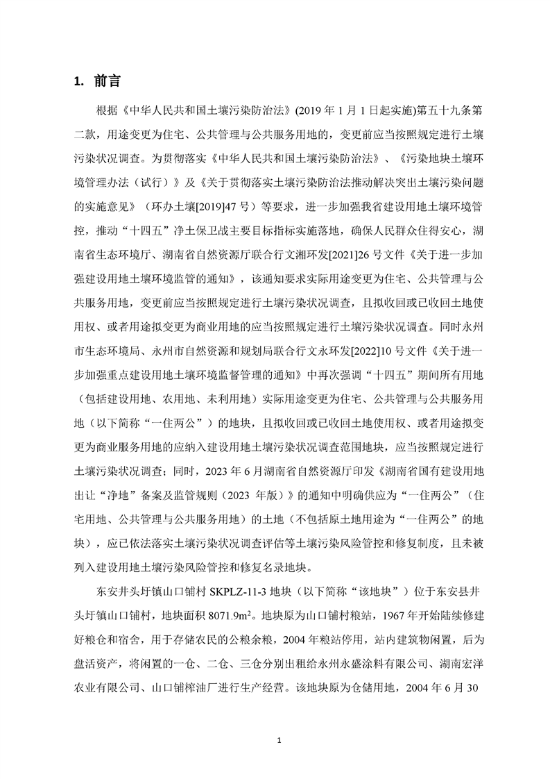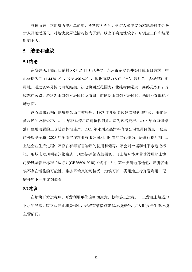 东安井头圩镇山口铺村SKPLZ-11-3地块土壤污染状况调查报告