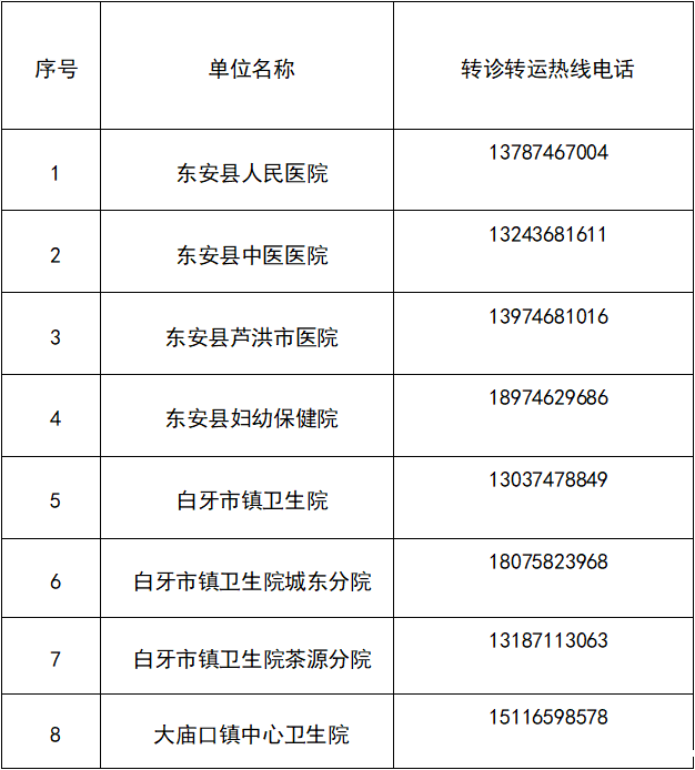 为进一步保障群众就医需求,畅通就医出行通道,现公布全县非急救转诊转运专班热线电话。