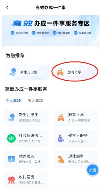 二、进入“入学一件事”主题服务
