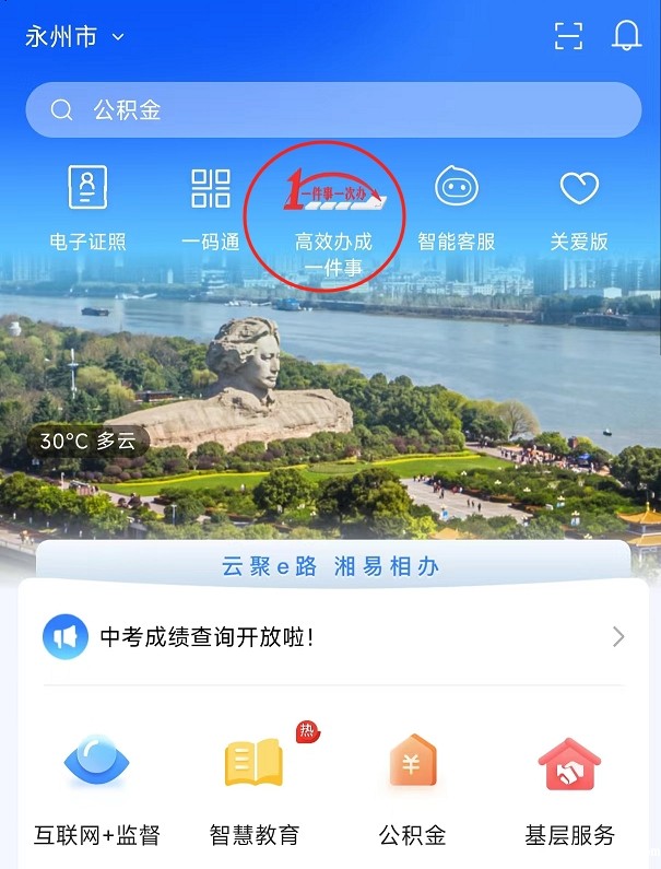 3、在办事清单里找到“永州”