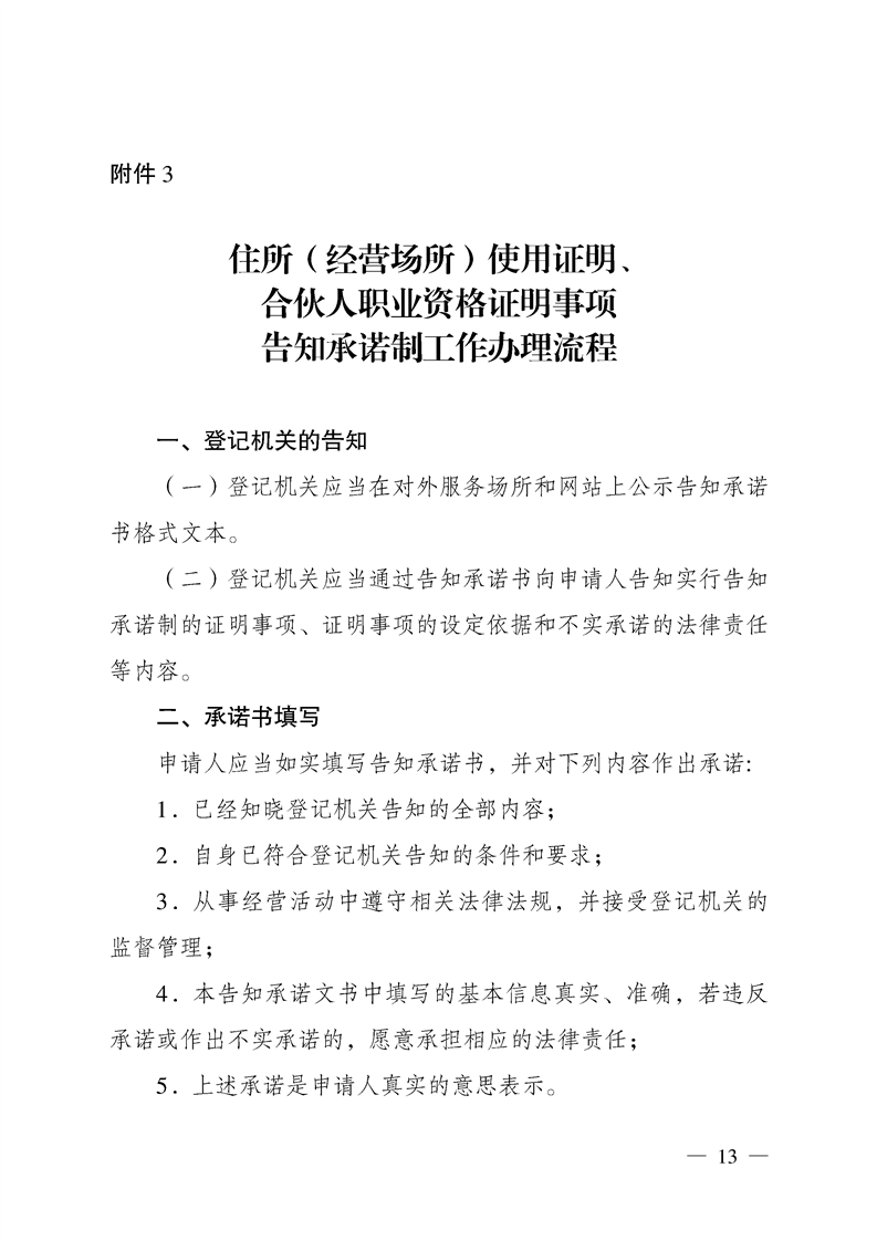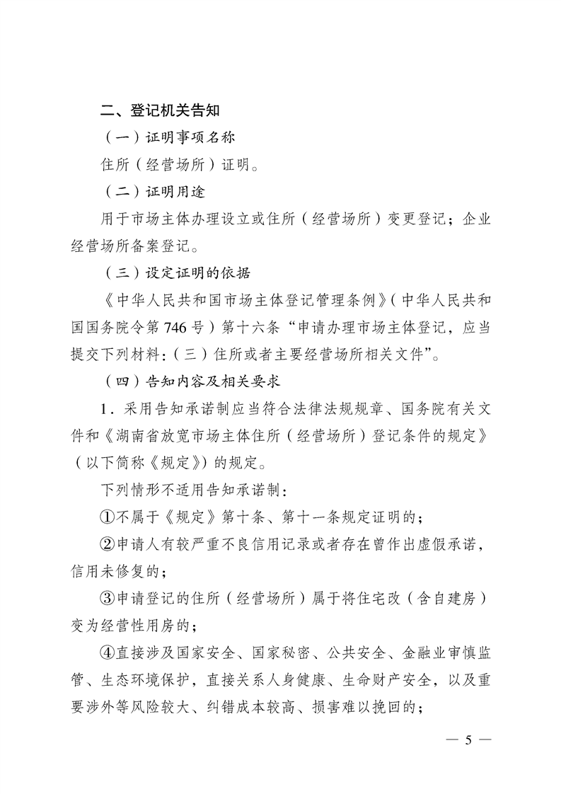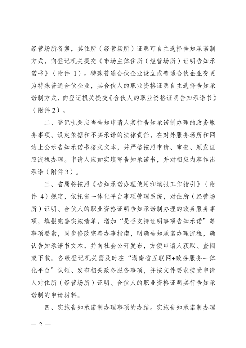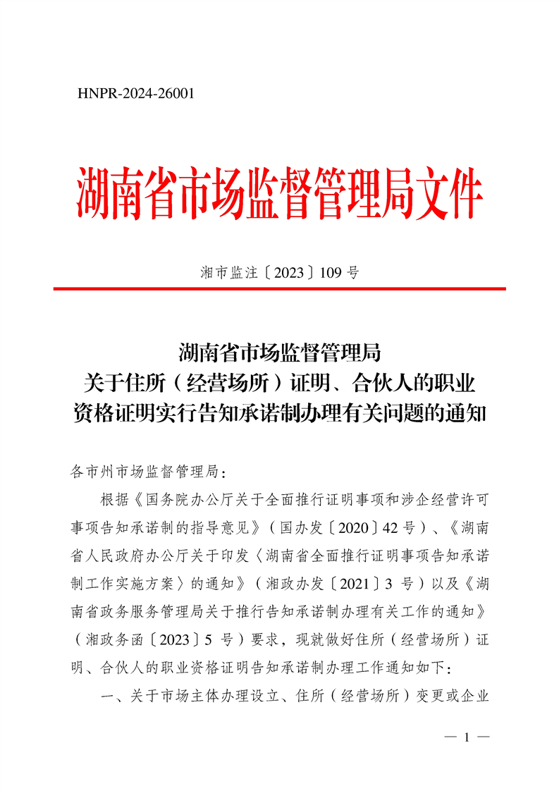 湖南省市场监督管理局关于住所(经营场所)证明、合伙人的职业资格证明实行告知承诺制办理有关问题的通知(湘市监注〔2023〕109号)