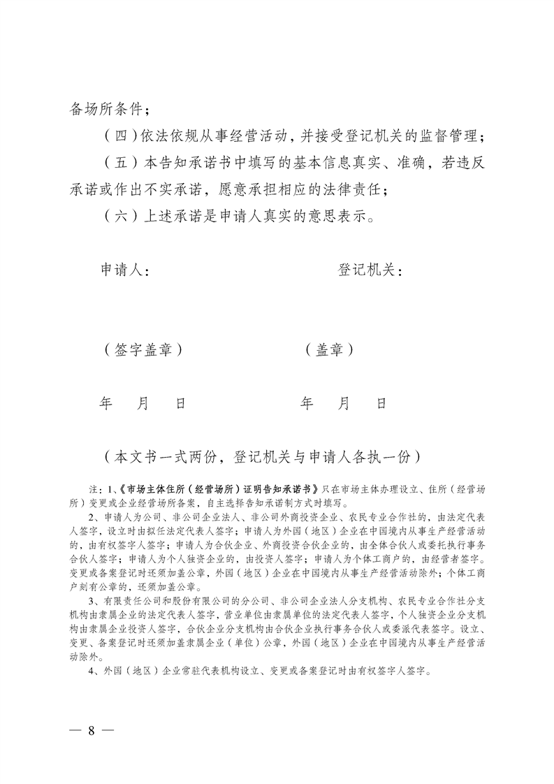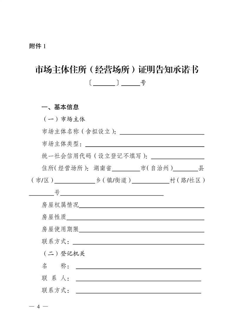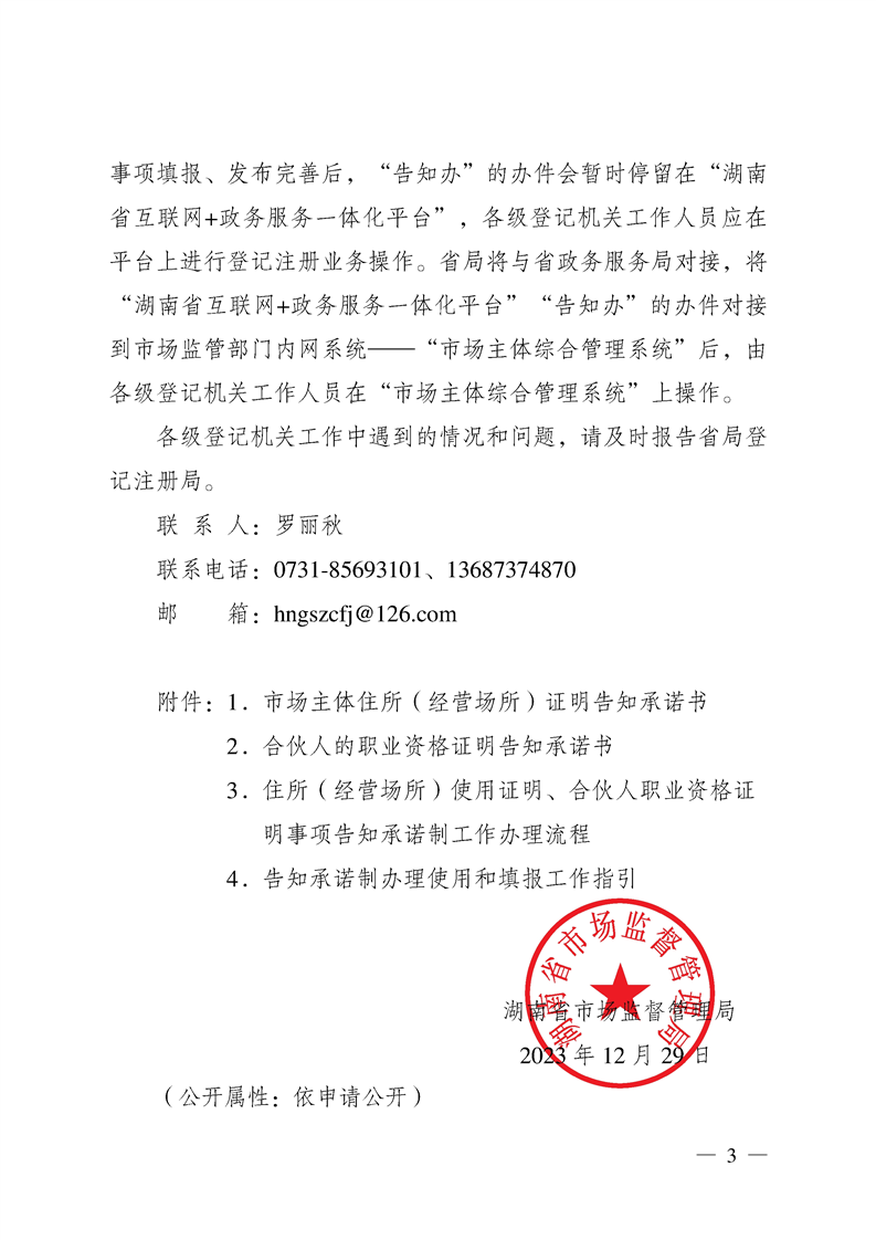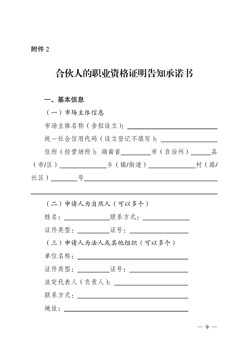 湖南省市场监督管理局关于住所(经营场所)证明、合伙人的职业资格证明实行告知承诺制办理有关问题的通知(湘市监注〔2023〕109号)