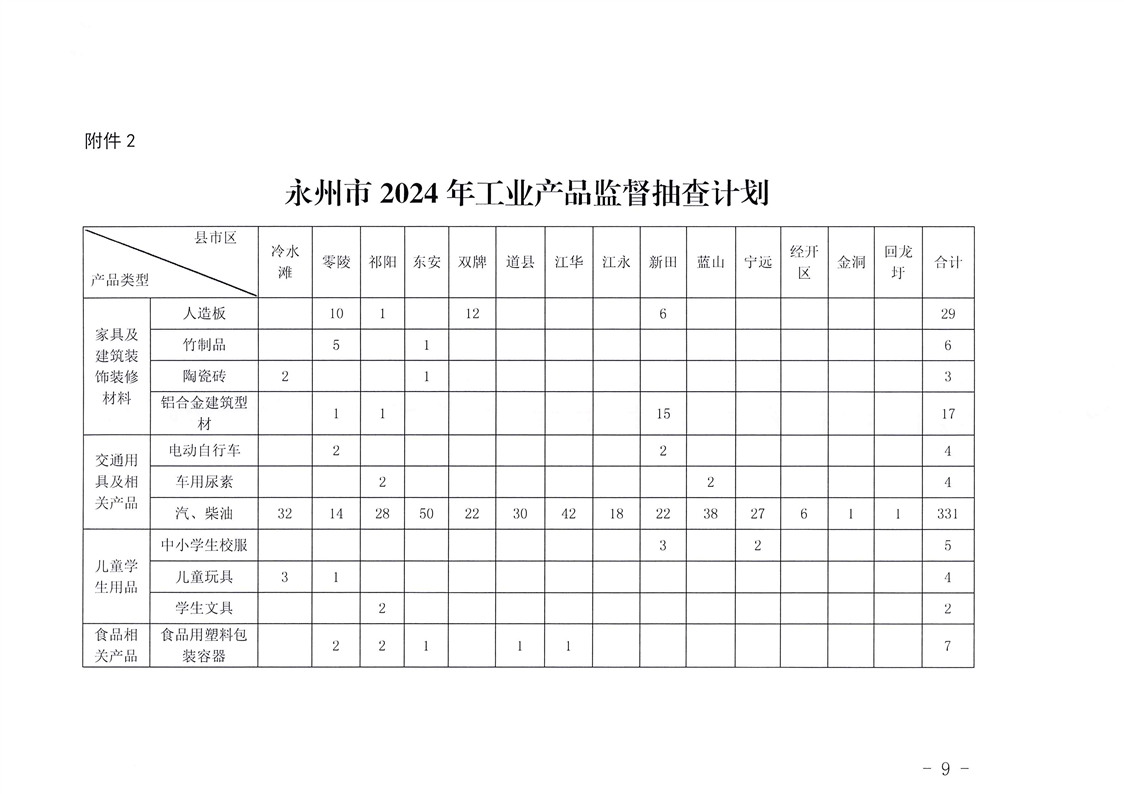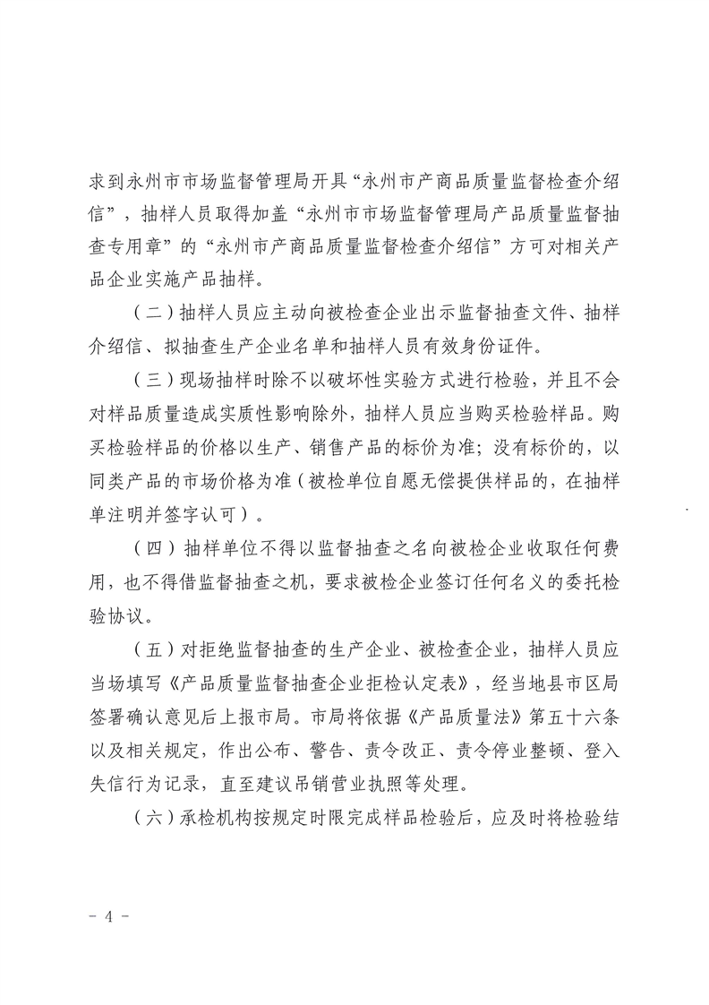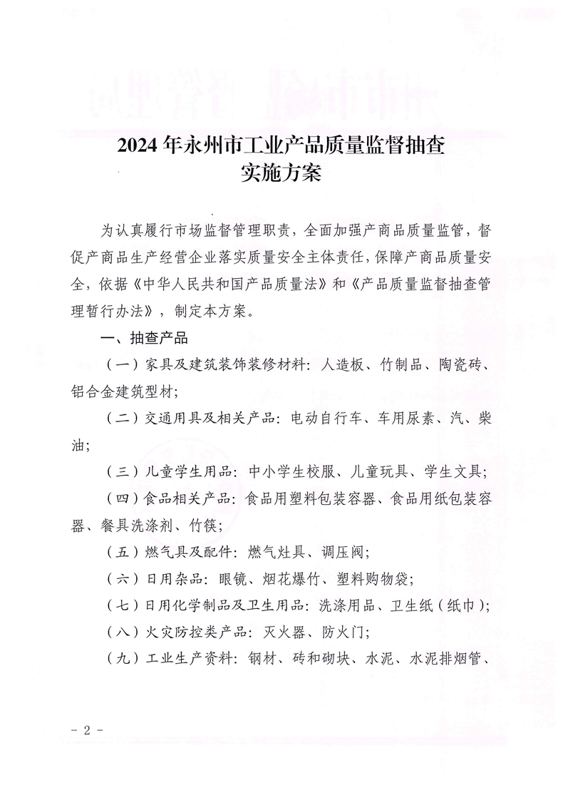 永州市市场监督管理局关于印发《2024年永州市工业产品质量监督抽查实施方案》的通知