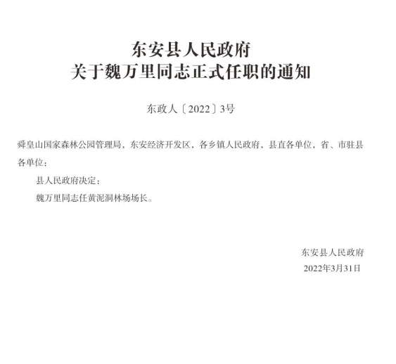 rayvet雷竞技关于魏万里同志正式任职的通知