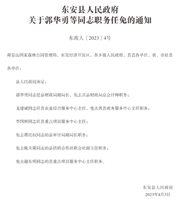rayvet雷竞技关于郭华勇等同志职务任免的通知