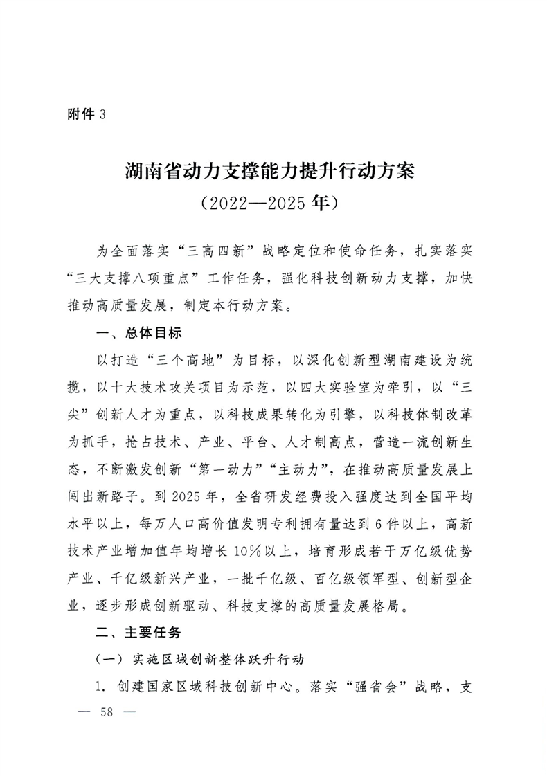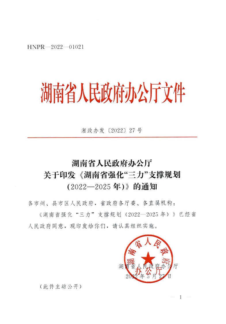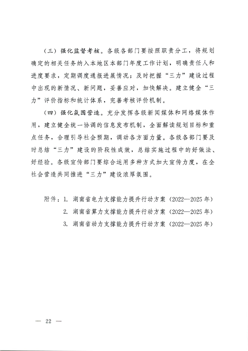 湖南省人民政府办公厅关于印发《湖南省强化“三力”支撑规划(2022-2025年)》的通知