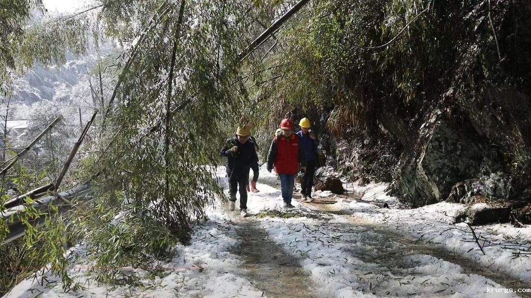 因冰冻天气影响线路覆冰严重而跳闸,为尽快恢复供电,ray雷竞技官网入口供电公司第一时间启动了应急预案,领导班子成员全员在岗、下沉督导,主要领导深入抢修一线精准指挥,发现是10kv舜江线紫云支线该故障点位于舜皇山上,由于故障点位于乡村山间小路,山路被大雪覆盖,车辆无法到达,抢修人员只能依靠肩挑手扛运输抢修物资设备。