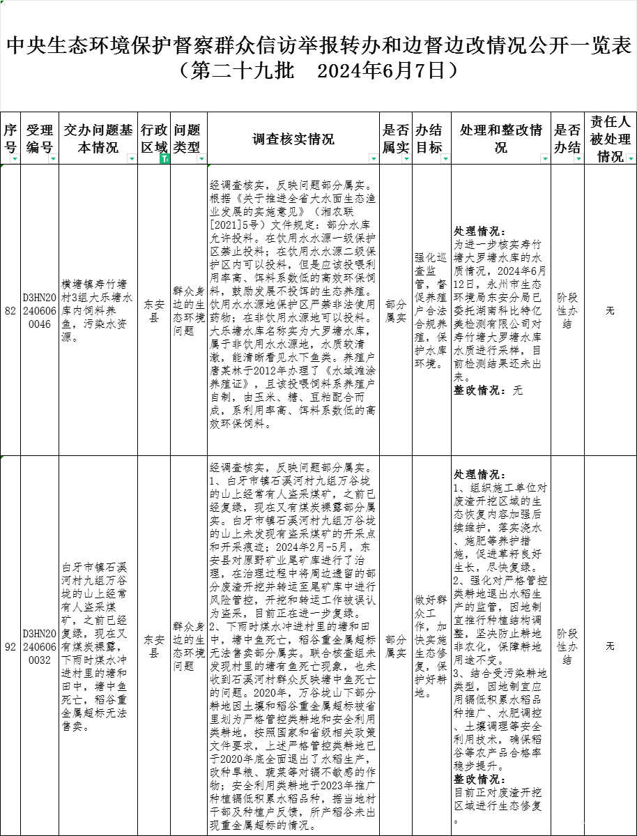 截至2024年6月17日,对中央第五生态环境保护督察组向ray雷竞技官网入口移交的第二十九批群众信访举报2件(其中重点件1件),相关县直部门和相关乡镇均按要求进行了调查处理,详见中央生态环境保护督察群众信访举报转办和边督边改公开情况一览表(第二十九批)。