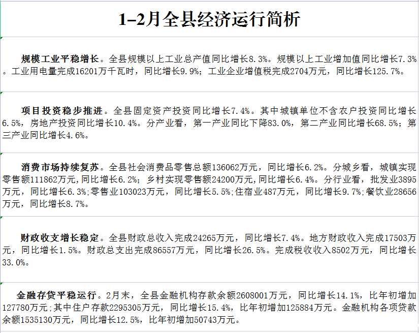 2023年1-2月全县经济运行简析