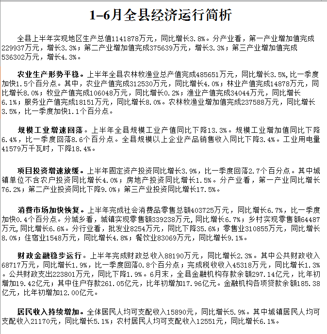 2024年1-6月全县经济运行简析