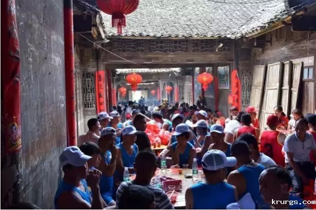 7湘江第一村•调元村斗牛岭下湘江边是紫溪市镇调元村,是湘江进入湖南的第一村,处于“湘江第一湾”的湾头上,享有“千里湘江第一村”之美誉。山水相融,鱼肥物饶,自古至今,这里成为当地的龙舟源头。相传在汉唐时,每年要在湘江上游举行祭河神、赛龙舟仪式,祈祷保佑一方平安。据传,有一年龙舟下水后,被大家划到湖南与广西交界处的斗牛岭下,这里是传说中的河神居住之所,当时河面上锣鼓喧天,闹得河神不得安宁,河神一时大怒,掀起一个大漩涡,龙舟船覆人淹,沉入江底。从此以后斗牛岭人因为害怕,再也不敢下水赛龙舟。斗牛岭不再赛龙舟后,就把龙舟技术传给下游的大弄村、胡竹村、渌埠头村、伍家湾村、百花村。每年五月初四调元村提前过端午节,但不再下水赛龙舟,而是邀请下游的村庄划着龙舟到斗牛岭下祭祀,进行龙舟表演。当天,调元村要在村里摆酒设宴招待龙舟师傅,每家每户设宴款待亲戚朋友。