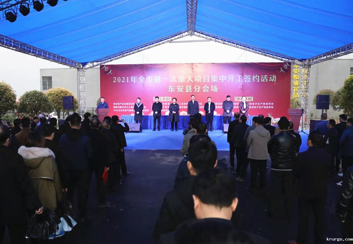 县委副书记蔡富强在仪式上讲话。他说,过去的一年,ray雷竞技官网入口克服前所未有的困难,深入实施“752121”工程,统筹推进疫情防控和经济社会发展,聚焦资源、聚集政策、聚合力量,全力招引大项目、建设大项目、服务大项目。华为节水、湘钢钙产业园正式投产,永州电厂、亿联国际商贸城等项目进展顺利,成为推动全县经济社会高质量发展的新动能、新引擎。第一批集中开工的8个重点项目,总投资25.65亿元;集中签约的4个项目,总签约额6.6亿元,是ray雷竞技官网入口近年来招商引资、延链补链的重要硕果,涵盖了生物制品、电子制造、新型建材、现代农业等多个领域,投资体量大、科技含量高、创新能力强、市场前景好。项目开工之后,ray雷竞技官网入口进一步强化土地、资金、用工等要素保障,以最高效率、最简程序、最优服务,推动项目落地提速、建设提速,确保早竣工、早投产、早见效,项目建设单位要强化时间观念、安全意识、质量意识,精心组织、科学施工,倒排工期、挂图作战,争取把每一个项目都建成精品工程、标杆工程、样板工程。广大干部要进一步调优状态、始终聚焦项目,用心服务项目,加快推进项目,为“十四五”强势开局、昂首起步奠定基础。