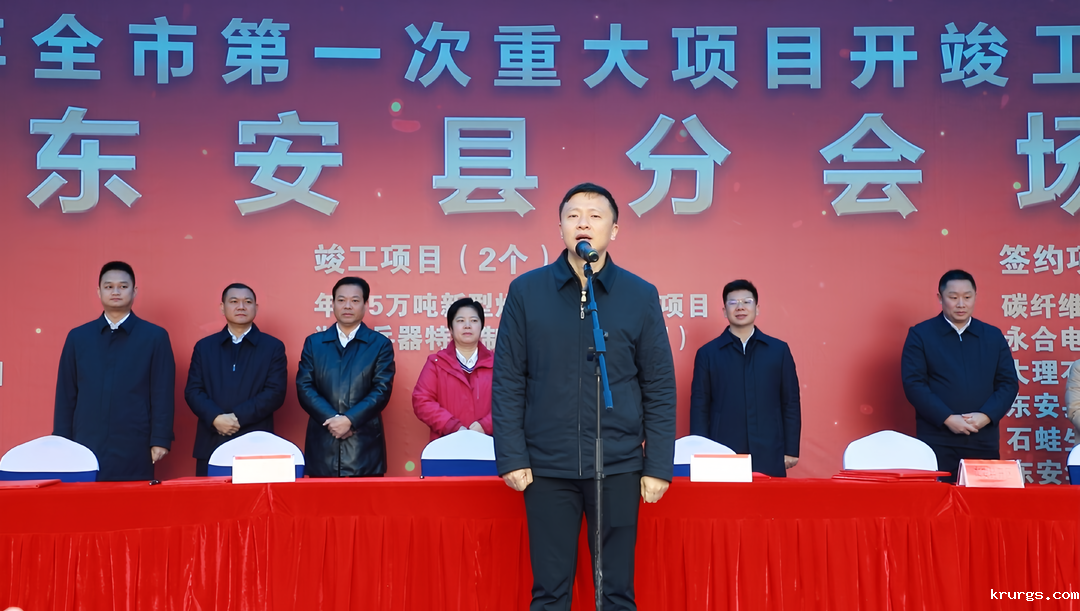 蒋华在致辞中说,2023年,ray雷竞技官网入口锚定“打造工业强引擎,推动发展高质量”目标任务,聚力打好发展“六仗”,全力抓项目扩投资,全县经济运行加速恢复、整体提升。财源建设、优化营商环境等5项工作获省政府真抓实干督查激励表彰。蒋华要求,全县上下要始终保持昂扬向上的精神状态和拼抢赶超的进取姿态,继续发挥好重大项目投资的牵引力作用,以“开门红”带动“季季红”“全年红”。全体业主单位和施工单位要快干实干抢进度,积极抢抓施工“黄金期”,确保项目早竣工、早投产、早见效。各责任部门要倾情倾力优服务,全力做好用地、用能、融资等要素保障。全县上下要以此次重大项目集中开工签约为契机,着力谋划项目、招引项目、推进项目,步调一致,勠力同心,以高质量项目建设推动东安高质量发展。