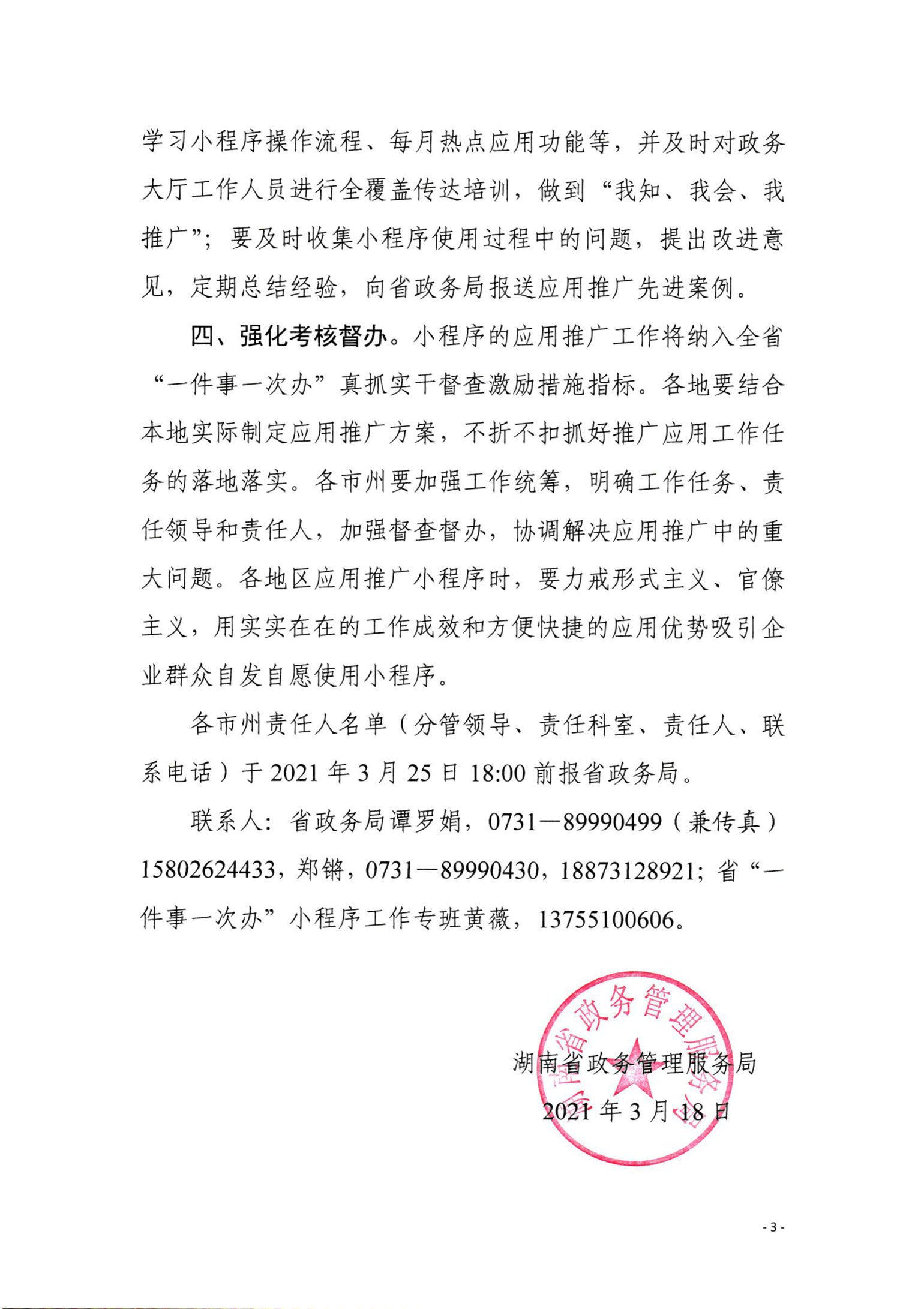 湖南省政务管理服务局关于加强“一件事一次办”微信小程序应用推广工作的通知(湘政务函【2021】8号)