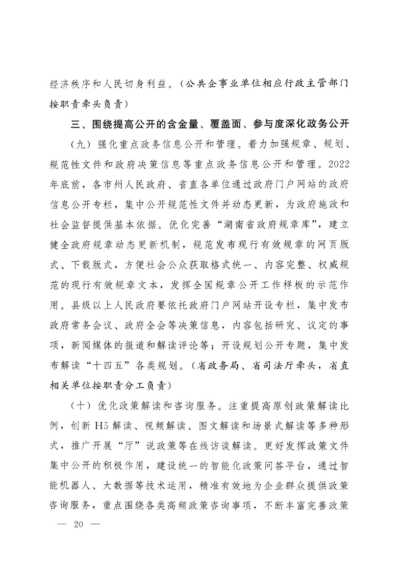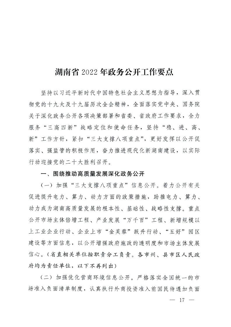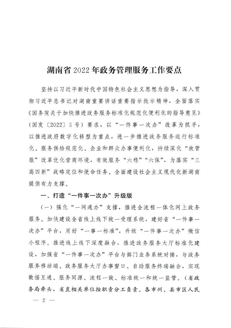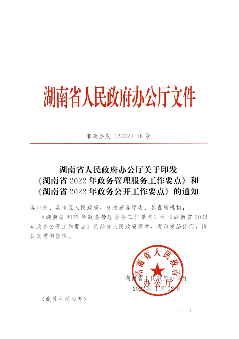 政务管理服务工作要点和政务公开工作要点湘政办发【2022】16号