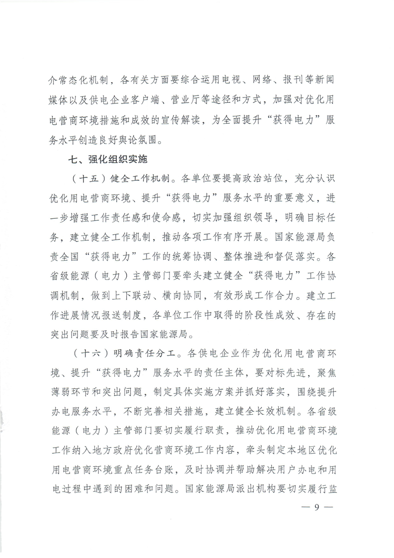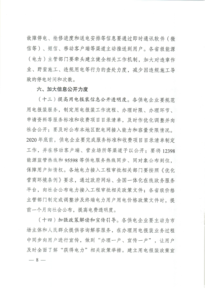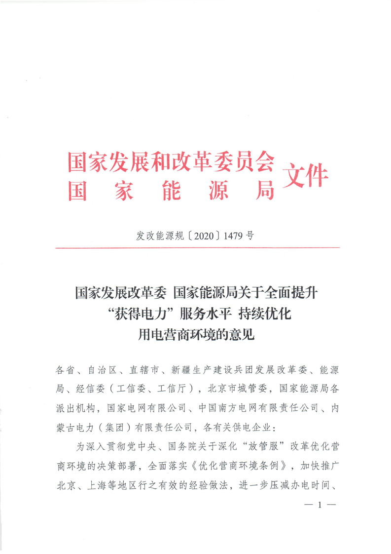 国家发展和改革委员会、国家能源局关于全面提升“获得电力”服务水平 持续优化用电营商环境的意见