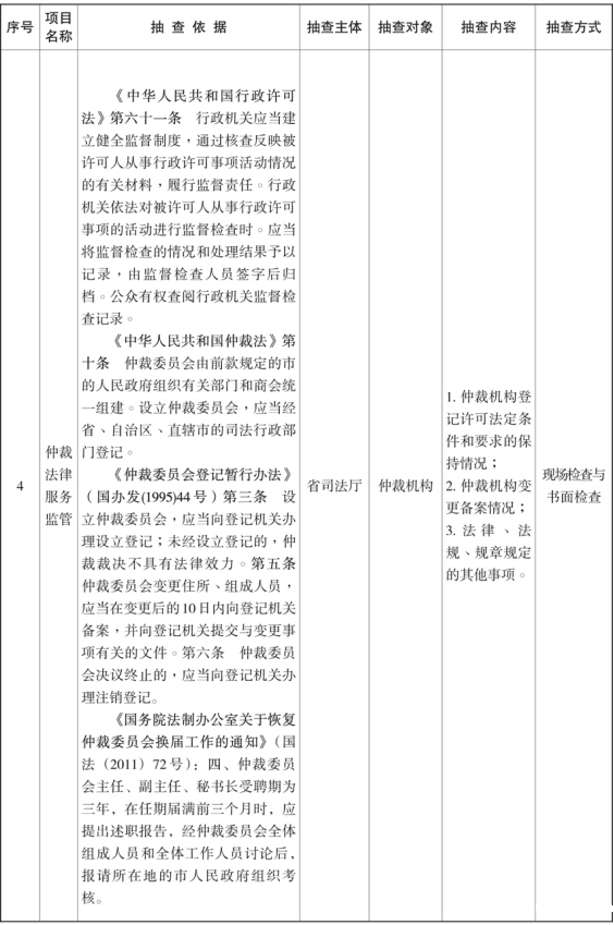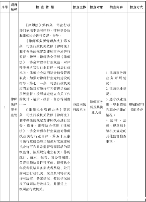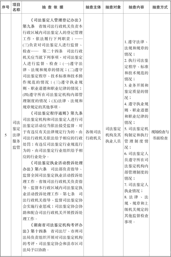 湖南省法律服务“双随机、一公开”抽查事项清单