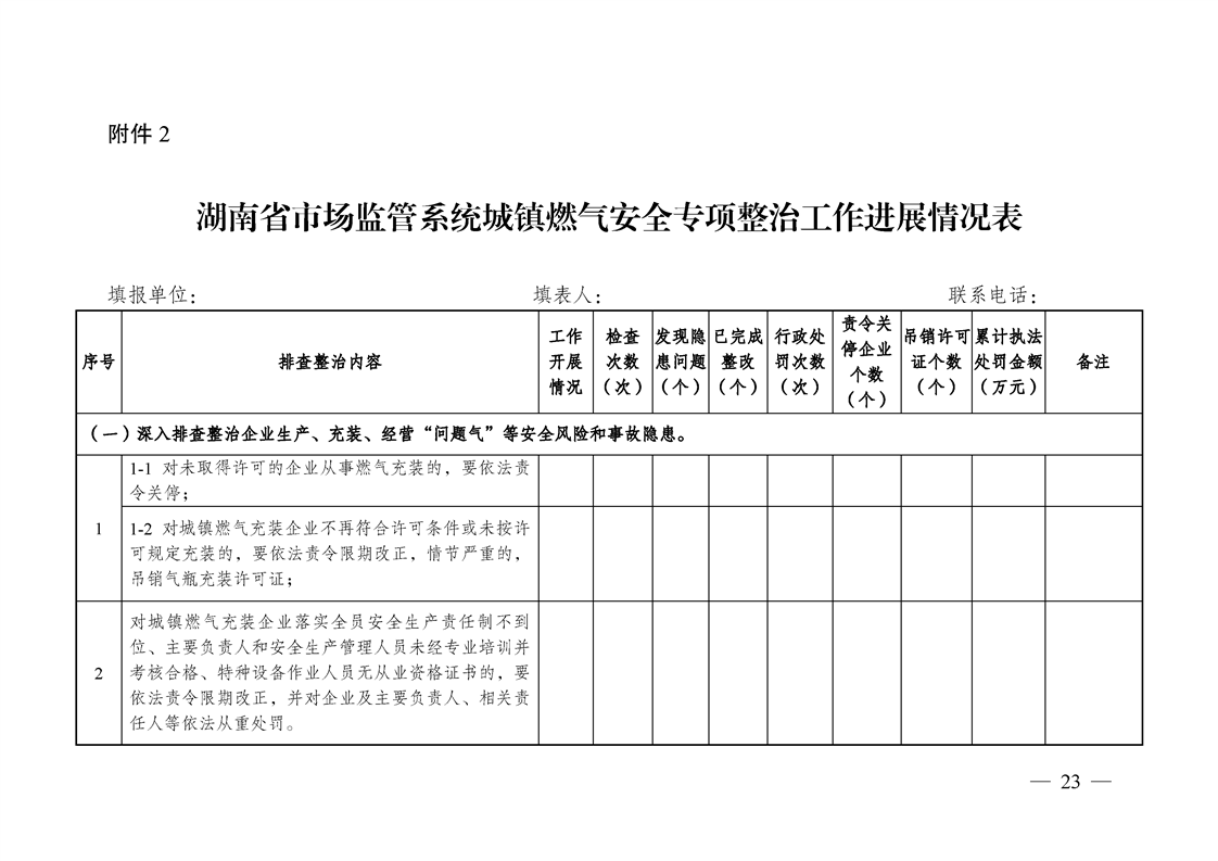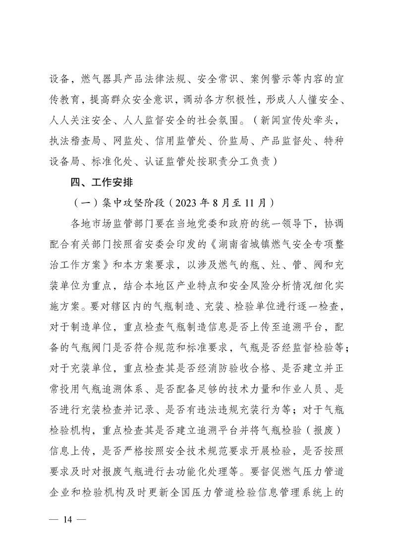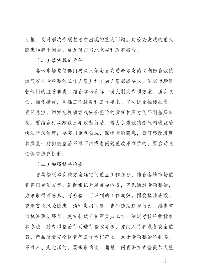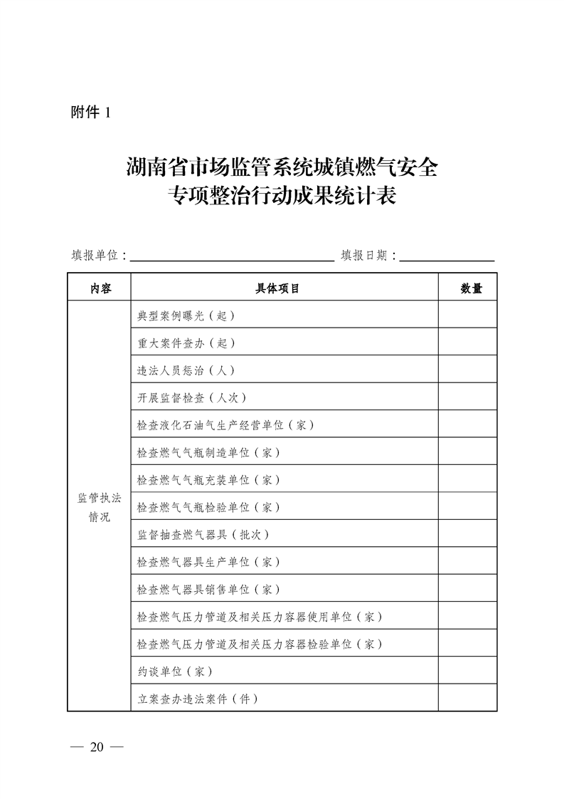 湖南省市场监督管理局关于印发《湖南省市场监管系统城镇燃气安全专项整治行动实施方案》的通知