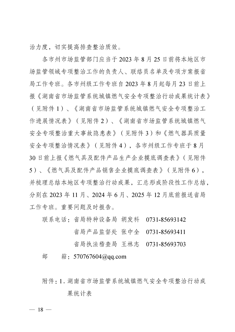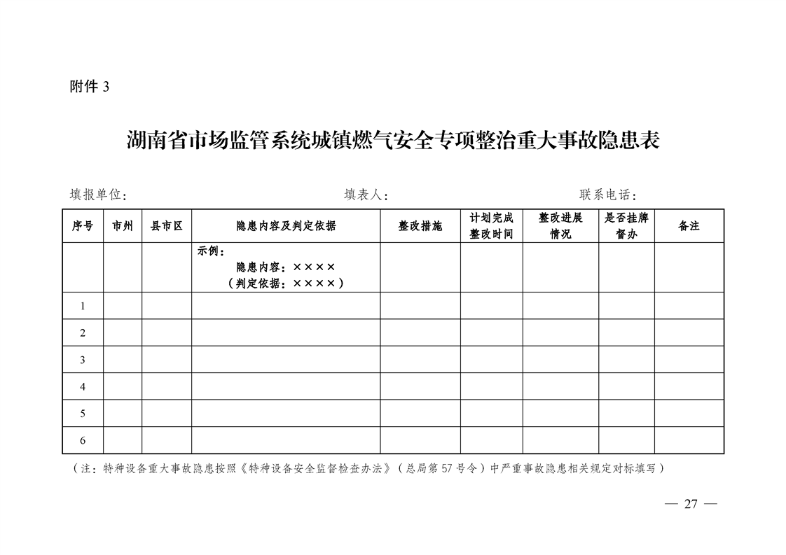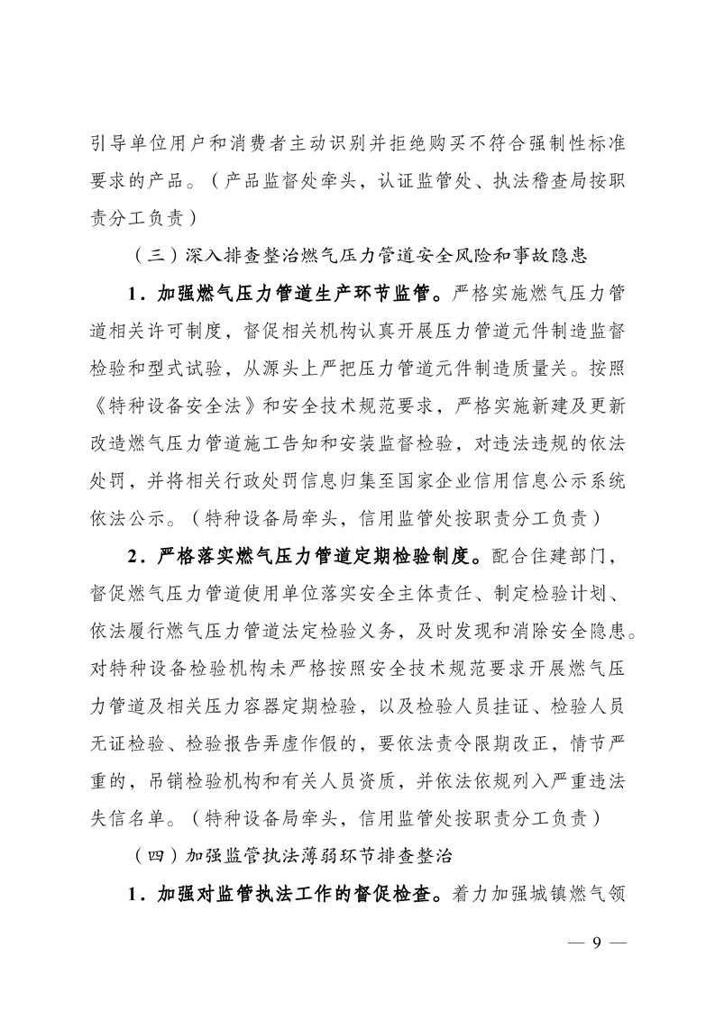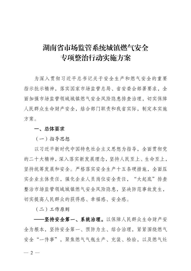 湖南省市场监督管理局关于印发《湖南省市场监管系统城镇燃气安全专项整治行动实施方案》的通知