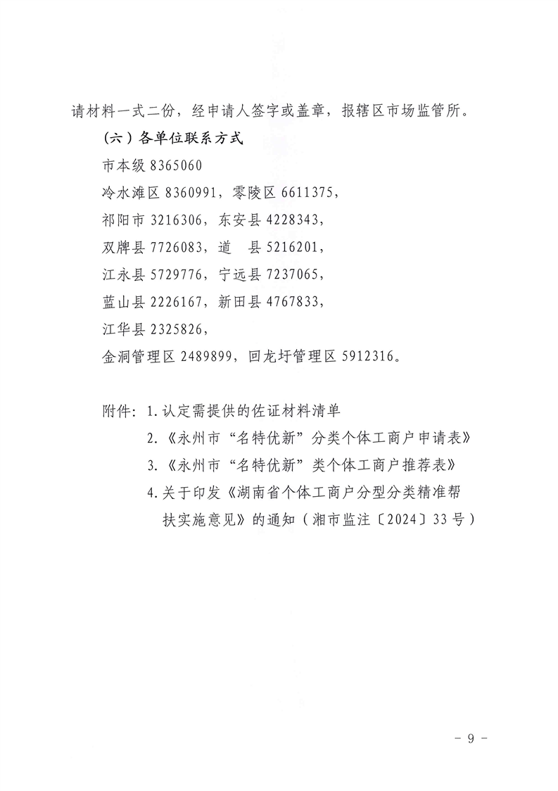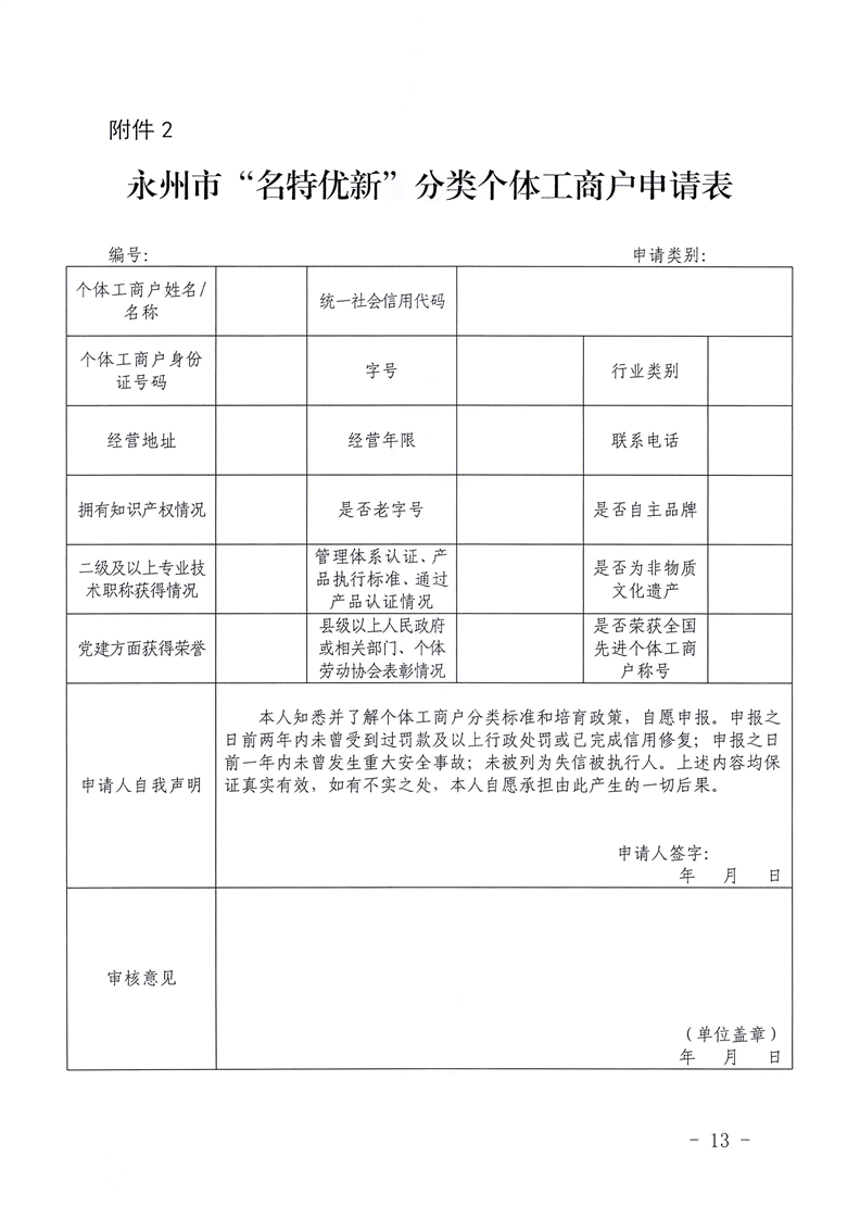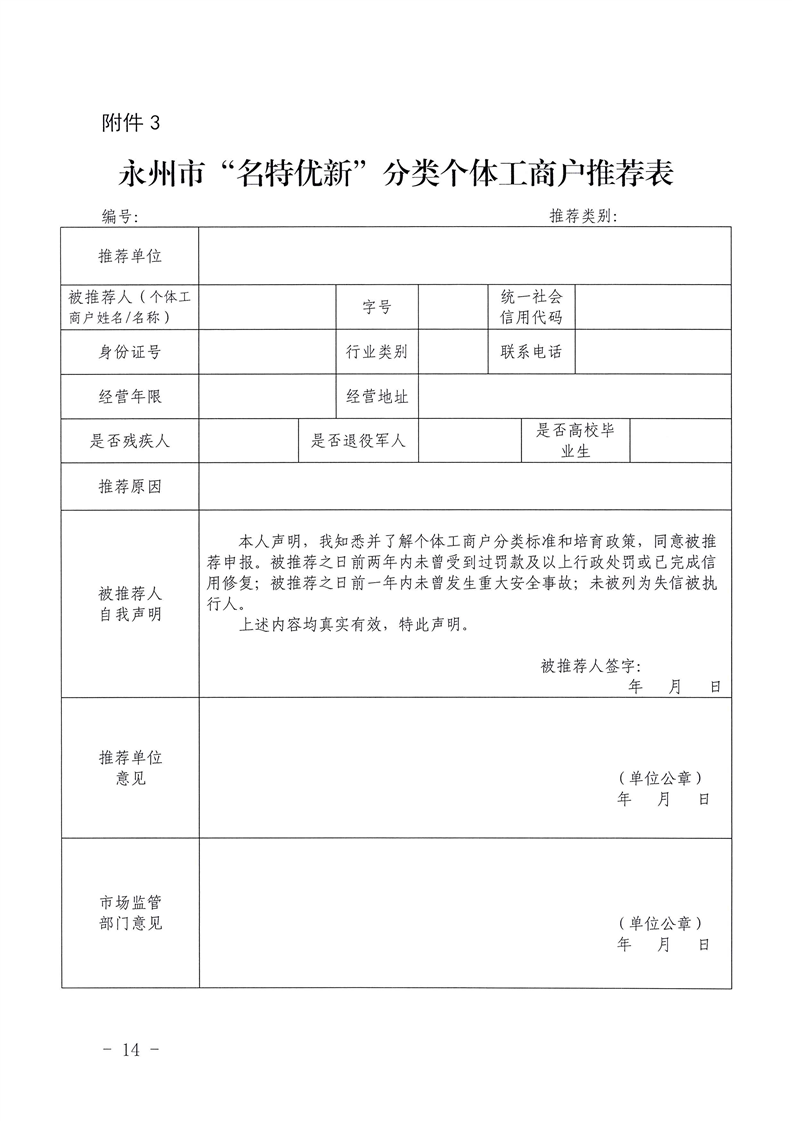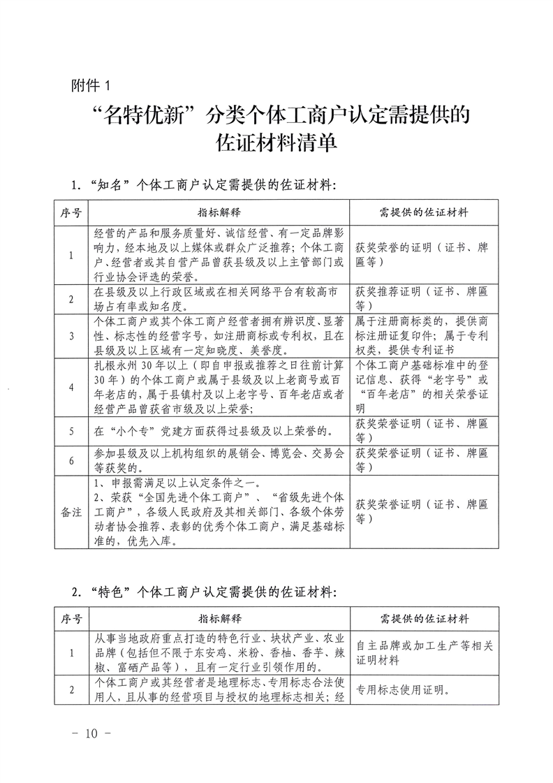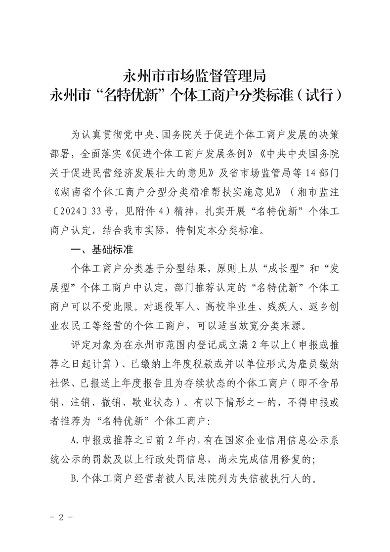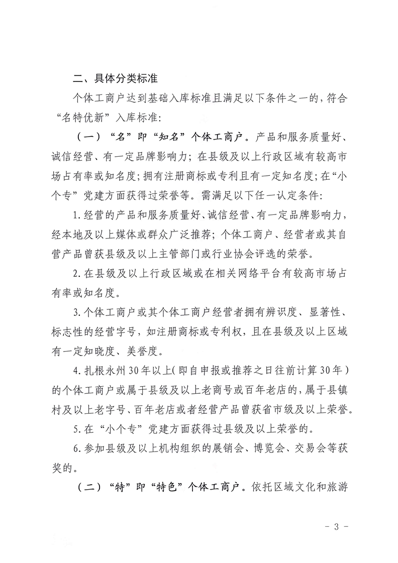 关于印发《永州市“名特优新”个体工商户分类标准(试行)》的通知