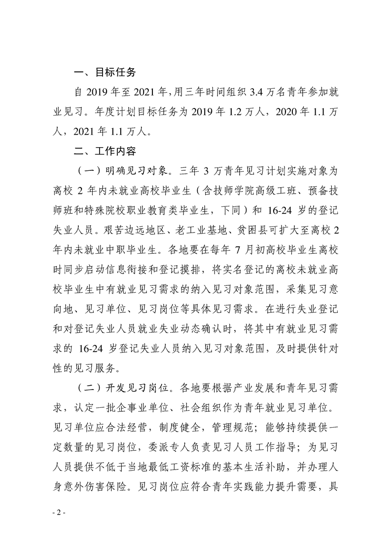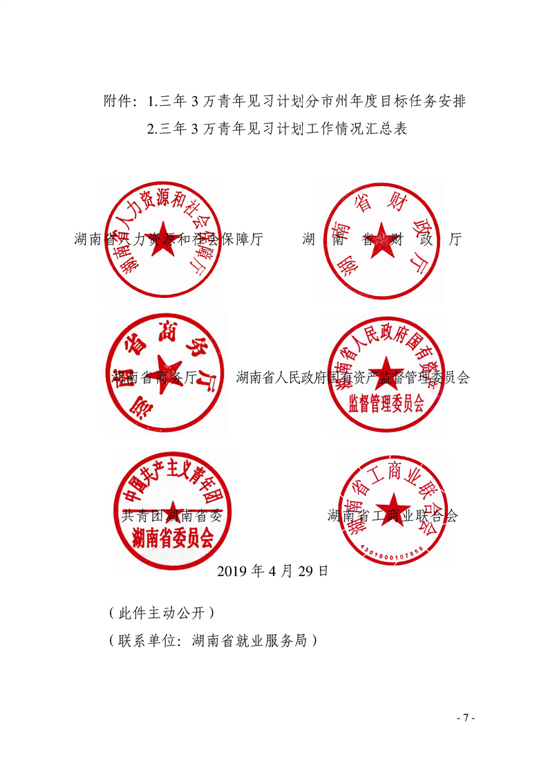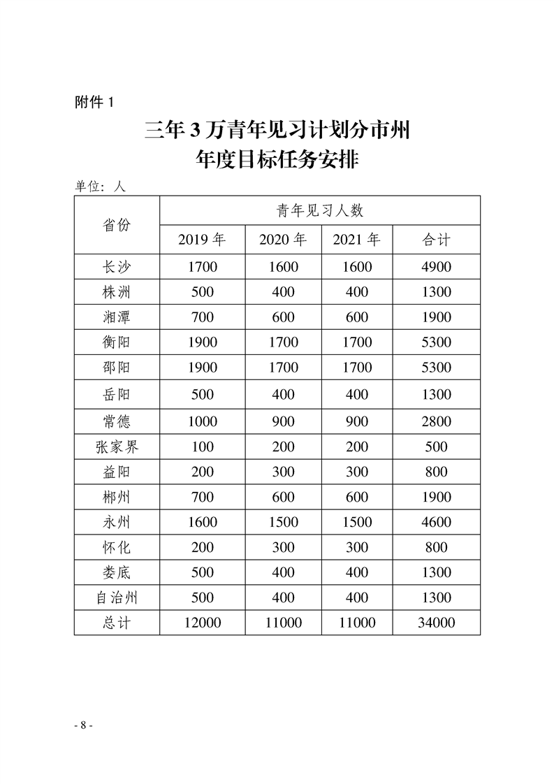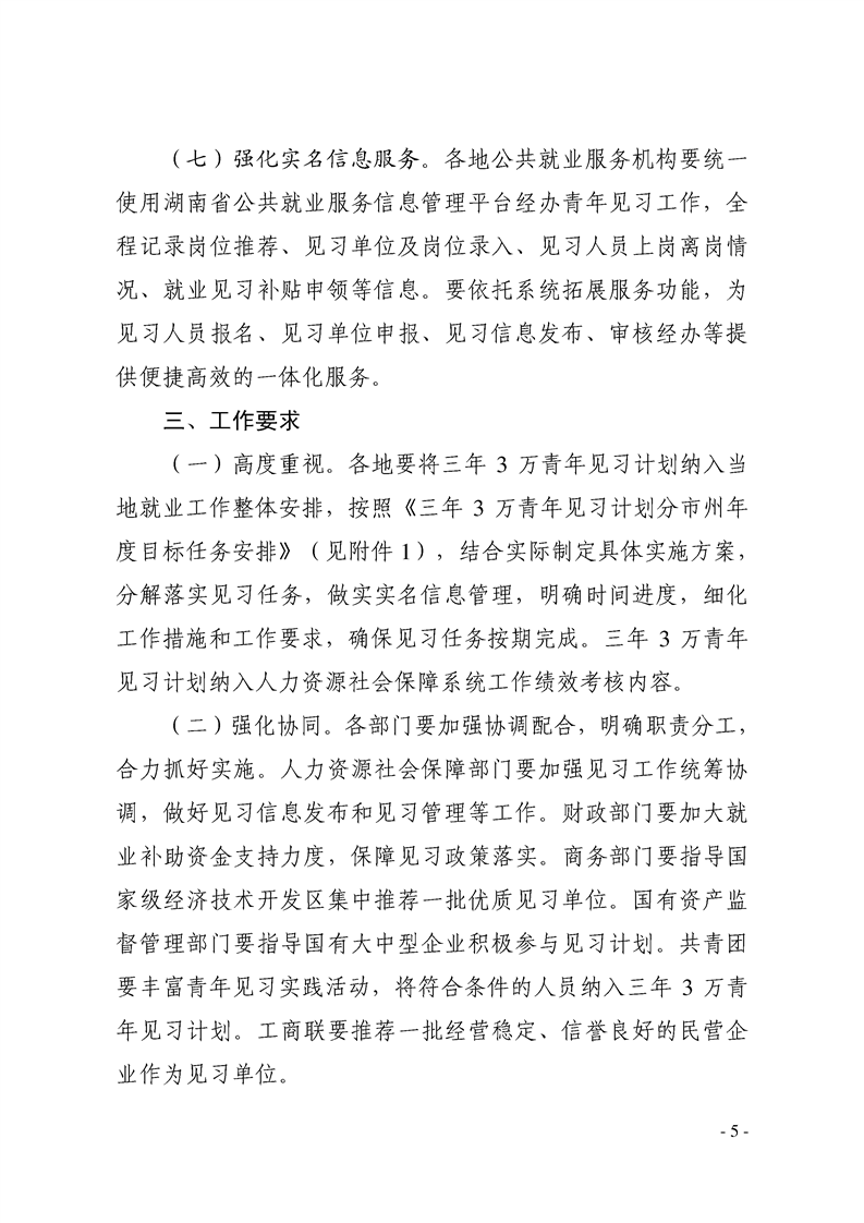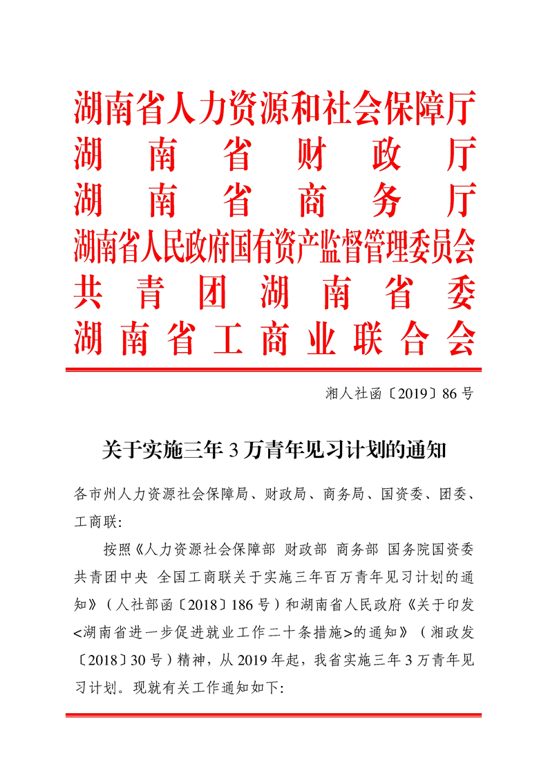 关于实施三年3万青年见习计划的通知湘人社函〔2019〕86号
