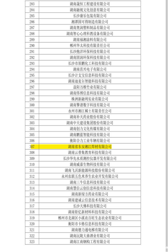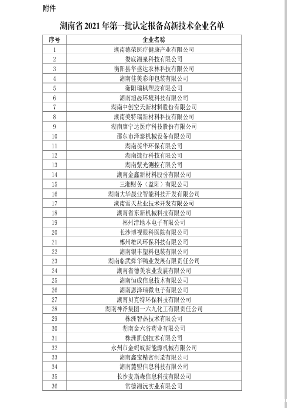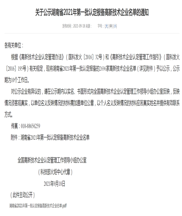 关于公示湖南省2021年第一批认定报备高新技术企业名单