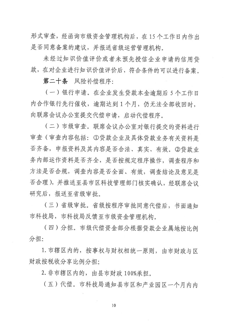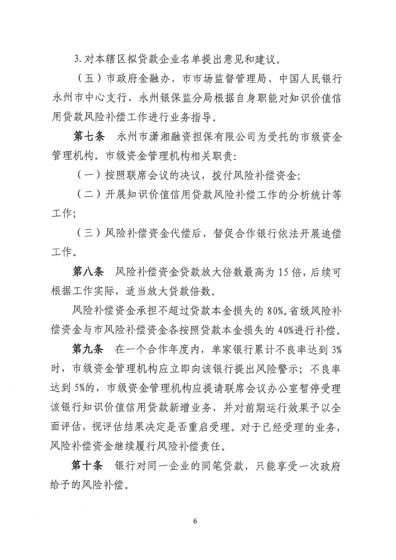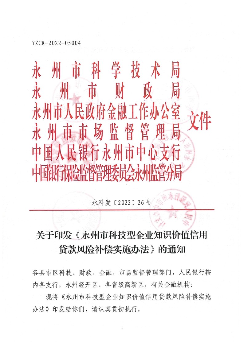 关于印发《永州市科技型企业知识价值信用贷款风险补偿实施办法》的通知
